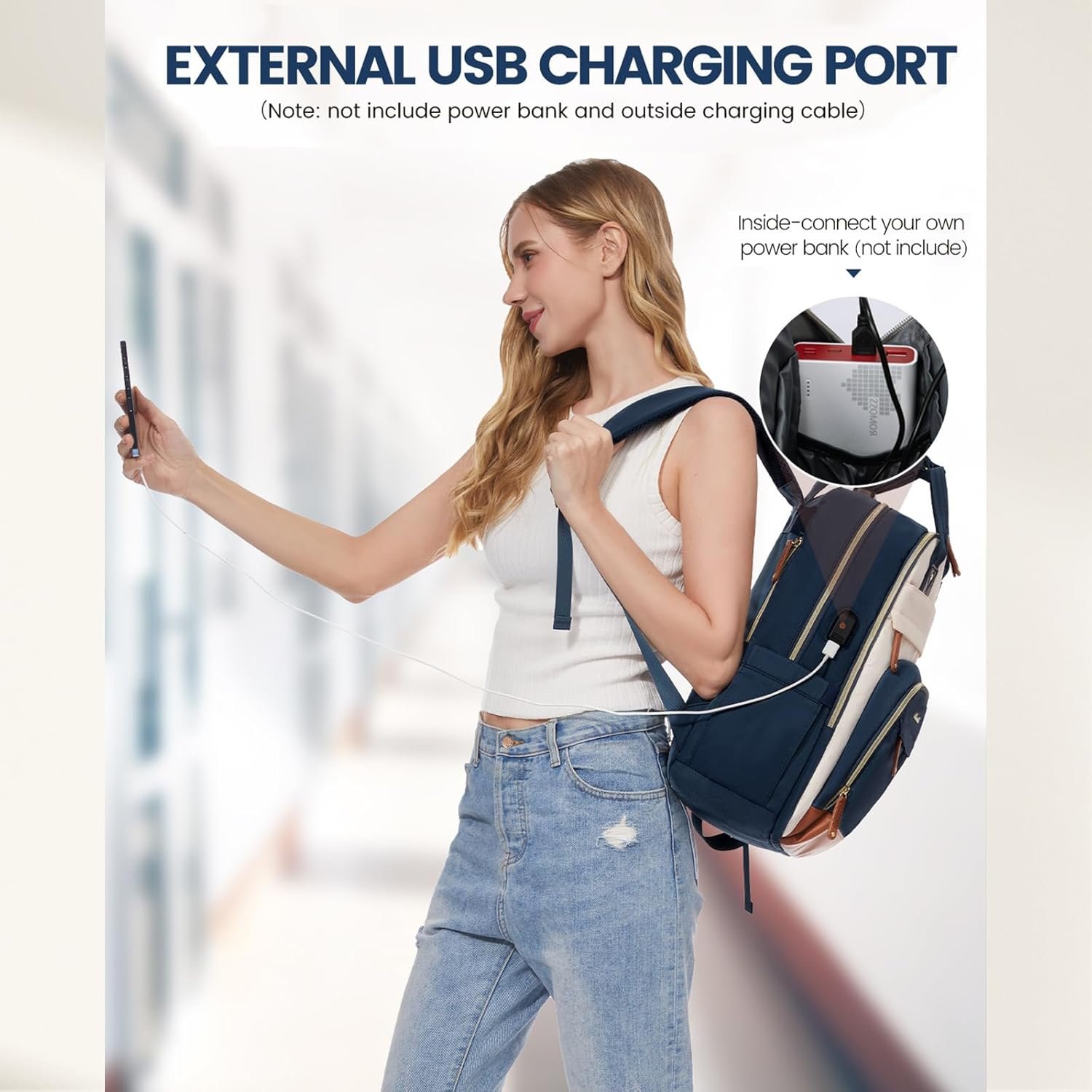 【USB PORT DESIGN】The lovevook backpack features a built-in USB charging port, making it easy to charge your phone while walking or traveling. (Power bank not included.) No need to hold your power bank in your hand, simplifying your life and travel experience.