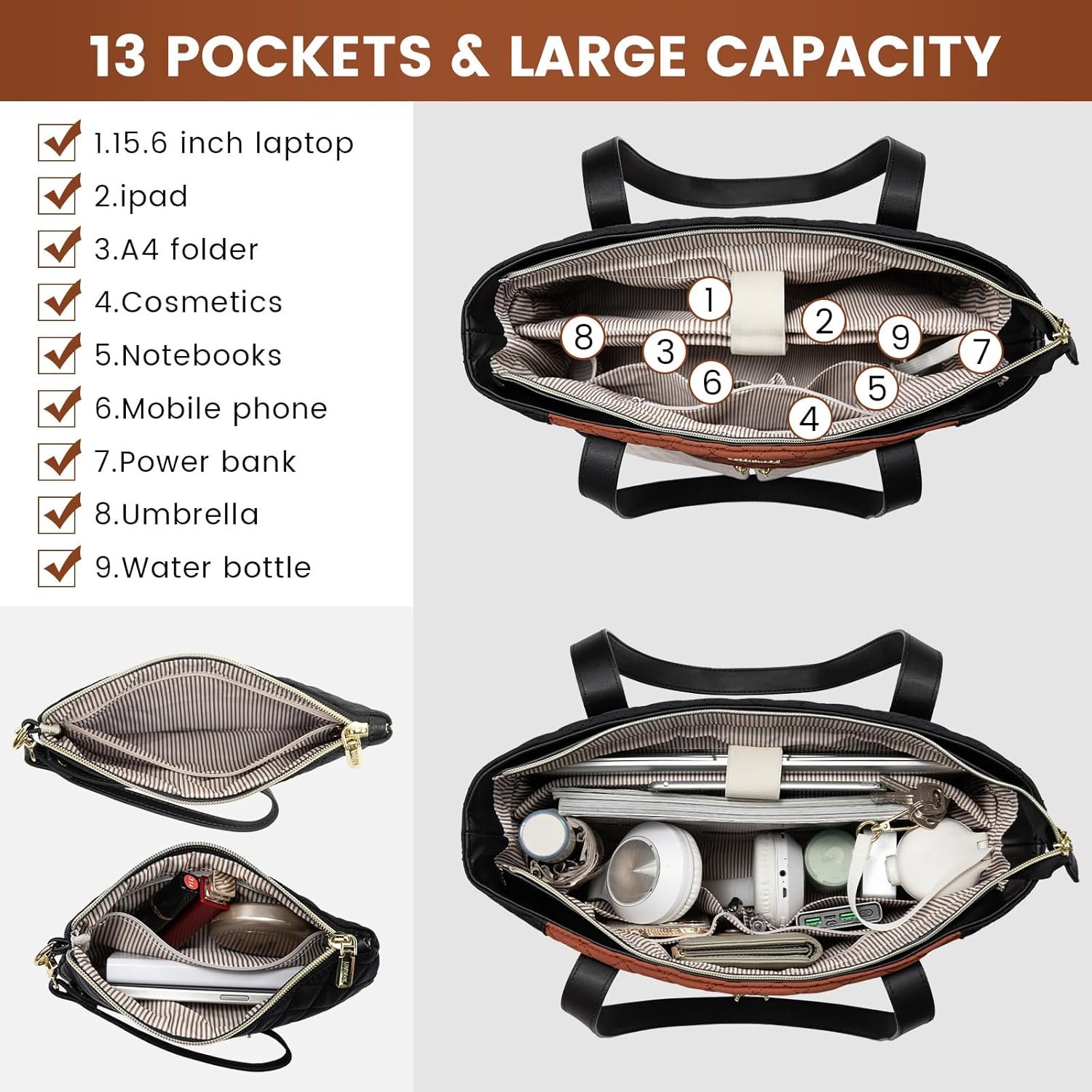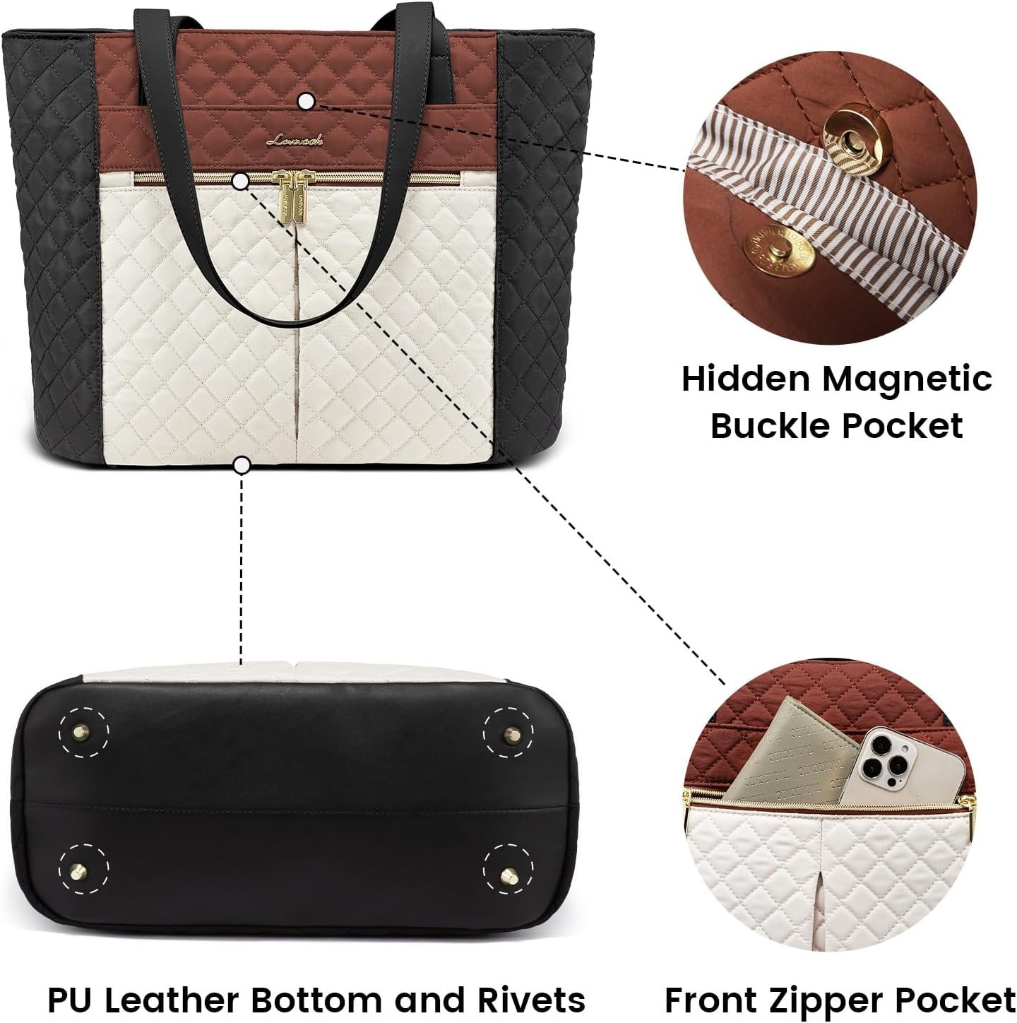 【Quilted Laptop Tote Bag for Women】 The built-in padded laptop compartment of the quilted tote bag fits up to 17″ laptop, with cushioned cotton sewn around, this laptop purse gives laptop the best protection. Computer bags for laptops for women.