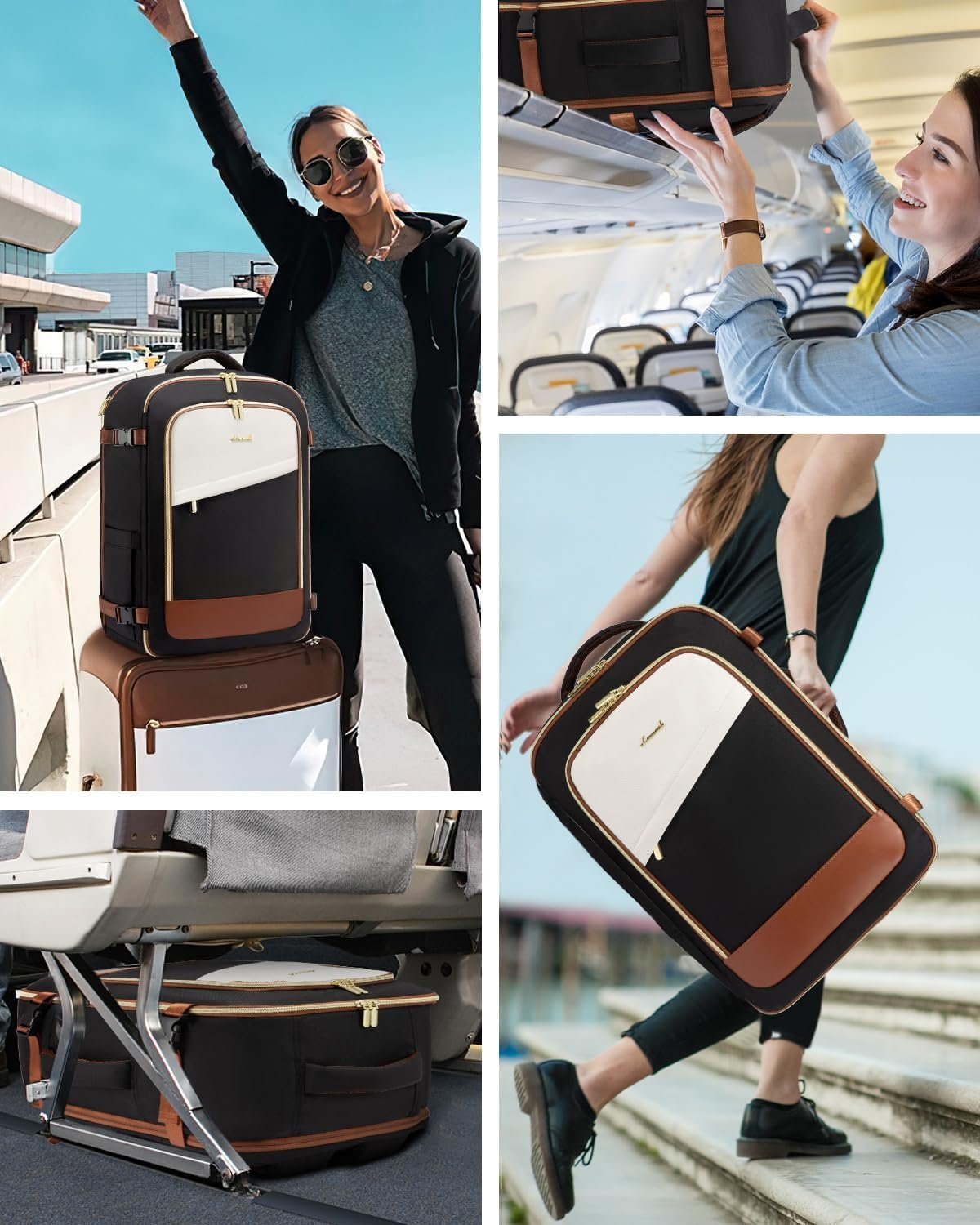 【Fly with Ease】 Sized right at 18*14*8 inches, it’s not just a favorite for major airlines like American Airlines, Delta, and JetBlue; it’s also a breeze at security checks. Slide it under your seat or pop it in the overhead bin—either way, it’s a snug fit.
