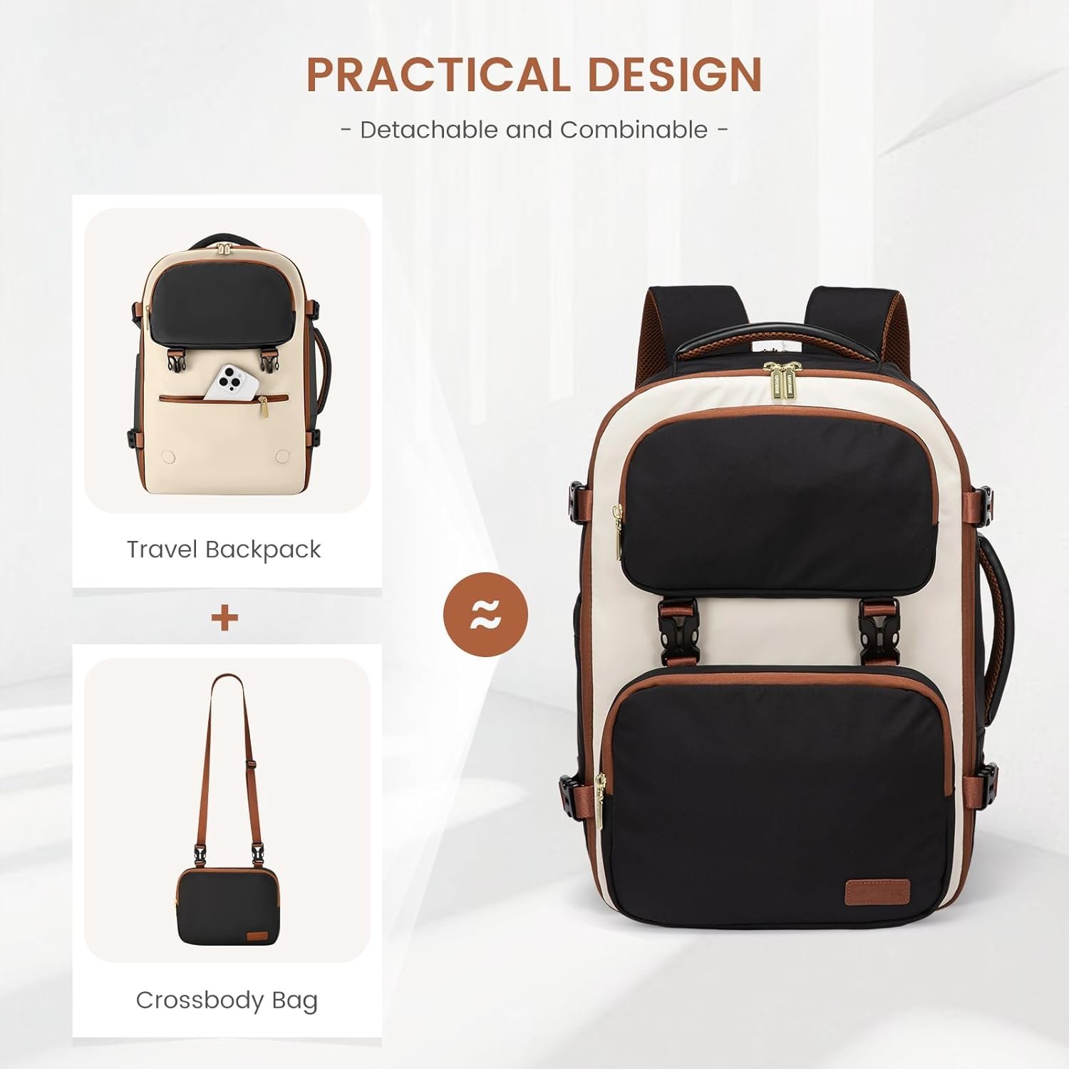 【Detachable Crossbody Bag】: Womens travel backpack easily converts into a casual crossbody or shoulder bag, perfect for daily outings and shopping trips. Its multifunctional design caters to various needs and preferences, offering both style and convenience. Simply remove the small pouch from the main backpack and attach the long shoulder strap for an effortless switch to a crossbody bag.
