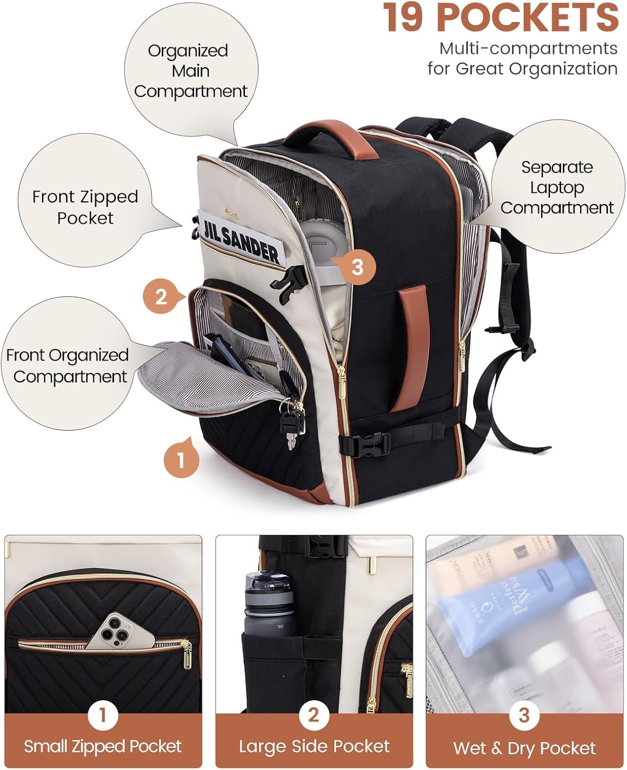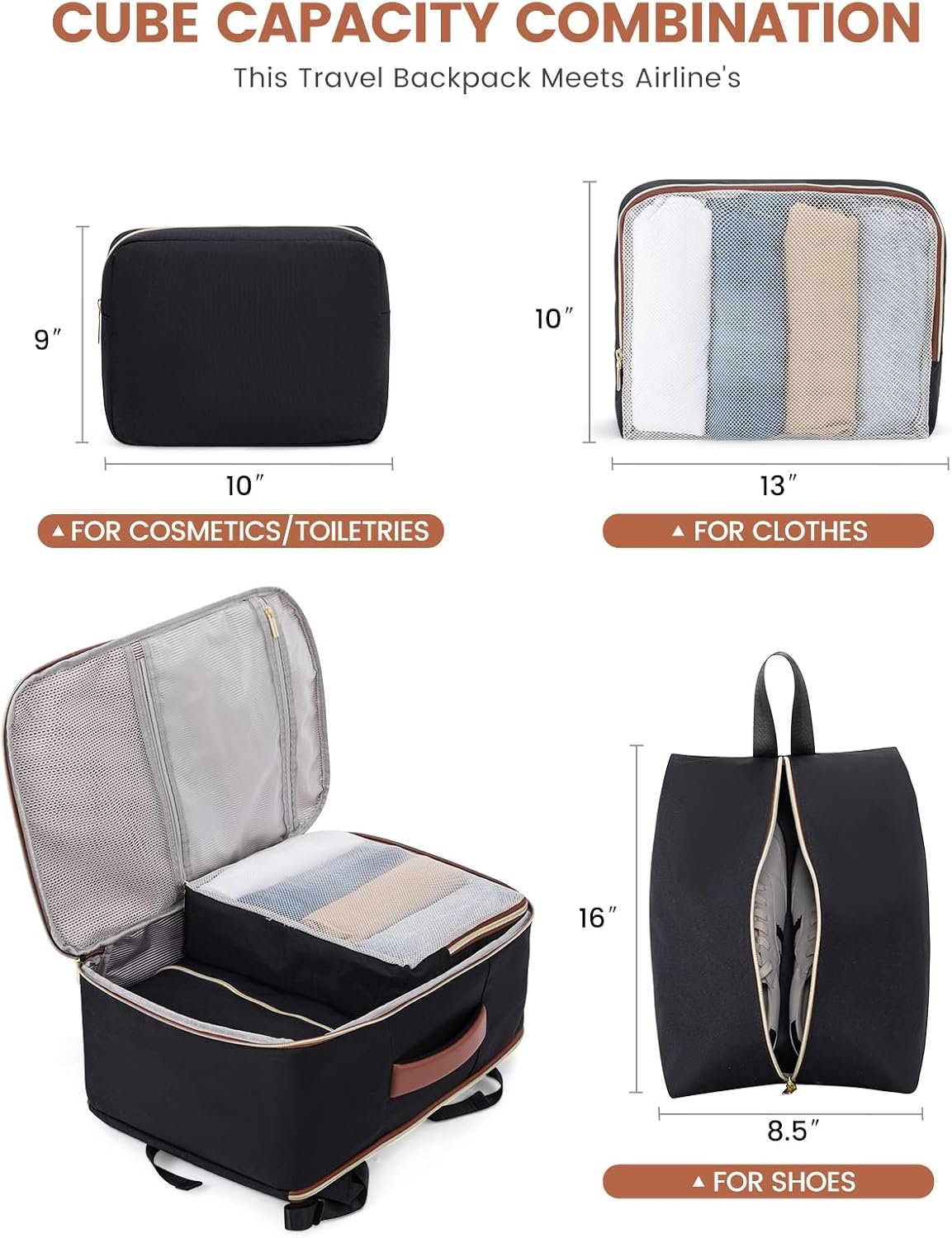 【3 EXTRA PACKING CUBES & WET POCKETS】: Effortlessly maintain organization in your luggage backpack with three variably-sized packing cubes designed for underwear, wet clothes, dirty laundry, and shoes. The traveling backpack’s specialized dry and wet separation pocket, crafted from high-density waterproof material, ensures your toiletries and damp garments remain segregated and neatly arranged.