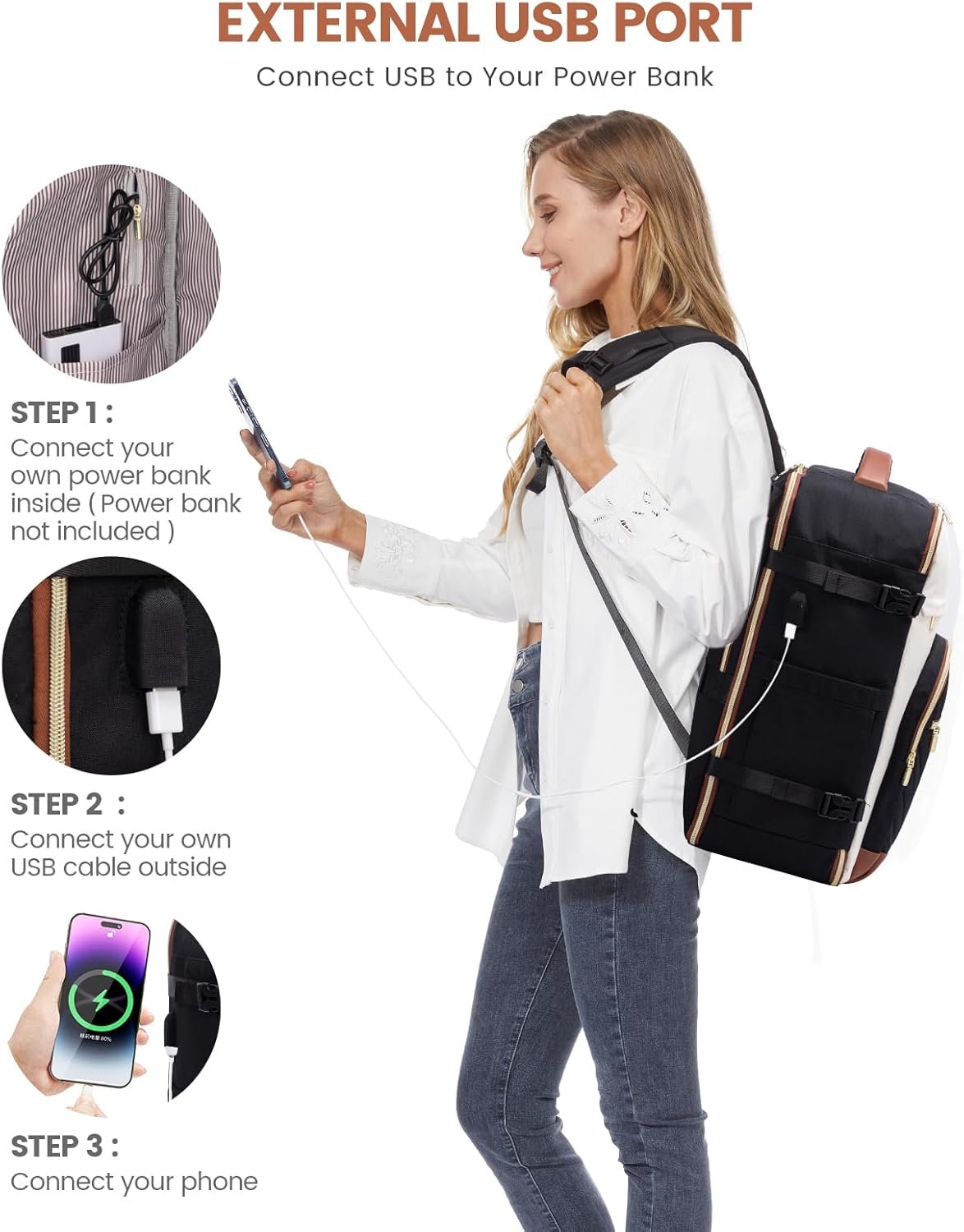 【PRACTICAL & CONVENIENT】: Carry your backpack for travel easily with handles on the top and one side. Side pockets for water bottles and umbrellas and a luggage strap allow it to easily slide onto a luggage tube, it’s a perfect airplane travel essential. This womens travel backpack makes long-distance travel, hiking, cycling, business trips, vacations, and camping more comfortable and enjoyable.