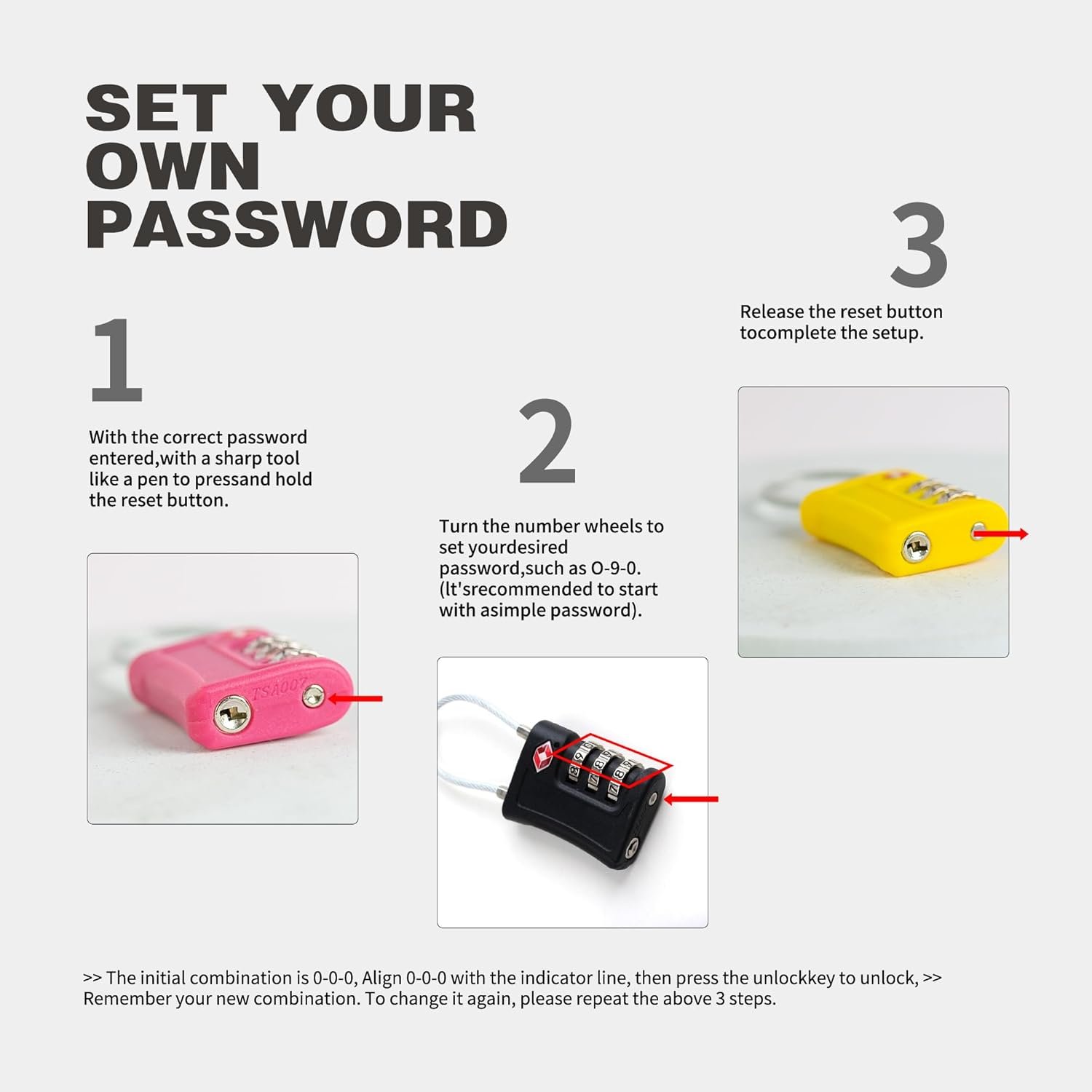 Introducing our TSA Approved Combination Lock, the ideal solution for securing your belongings effortlessly. Whether traveling or at the gym, this lock is your essential companion. TSA approval ensures easy inspection of your luggage without damaging the lock, allowing for stress-free travel while keeping your items safe. Setting your own combination is quick and easy, eliminating worries about lost keys or forgotten codes. Just follow the simple instructions to get started. Made from durable materials, this lock is designed for everyday use, providing long-lasting security for your valuables. Versatile enough for suitcases, backpacks, lockers, and gym bags, it’s a must-have for reliable security. Choose our TSA Approved Combination Lock for peace of mind knowing your belongings are secure. Order now for worry-free travels and everyday protection.