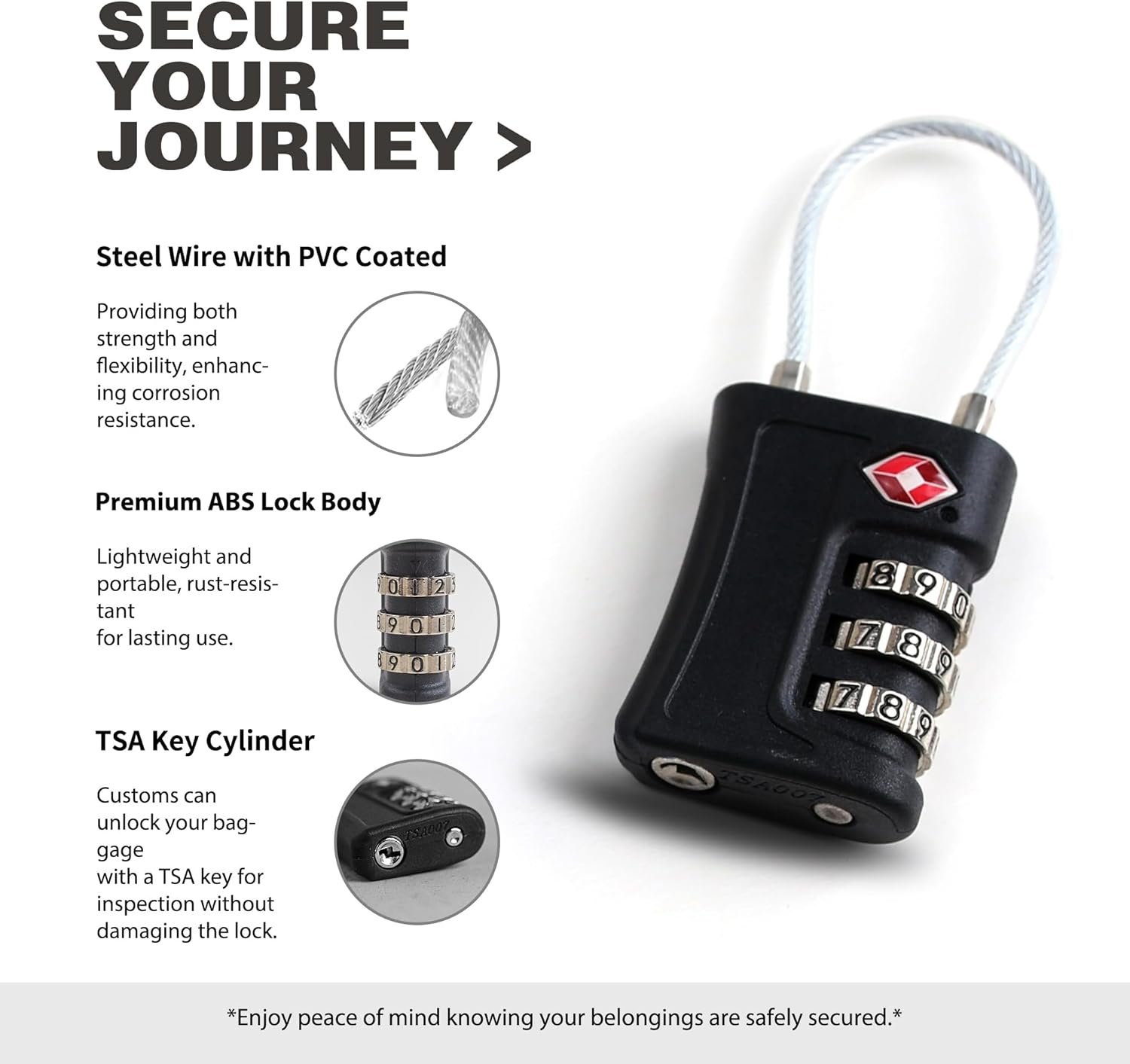 TSA APPROVED LOCK: TSA-approved lock allows TSA screeners to inspect and re-lock your baggage without damaging the lock, ensuring the security of your valuables in over 600 airports worldwide.