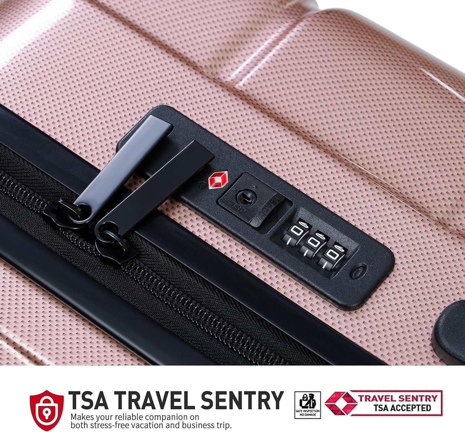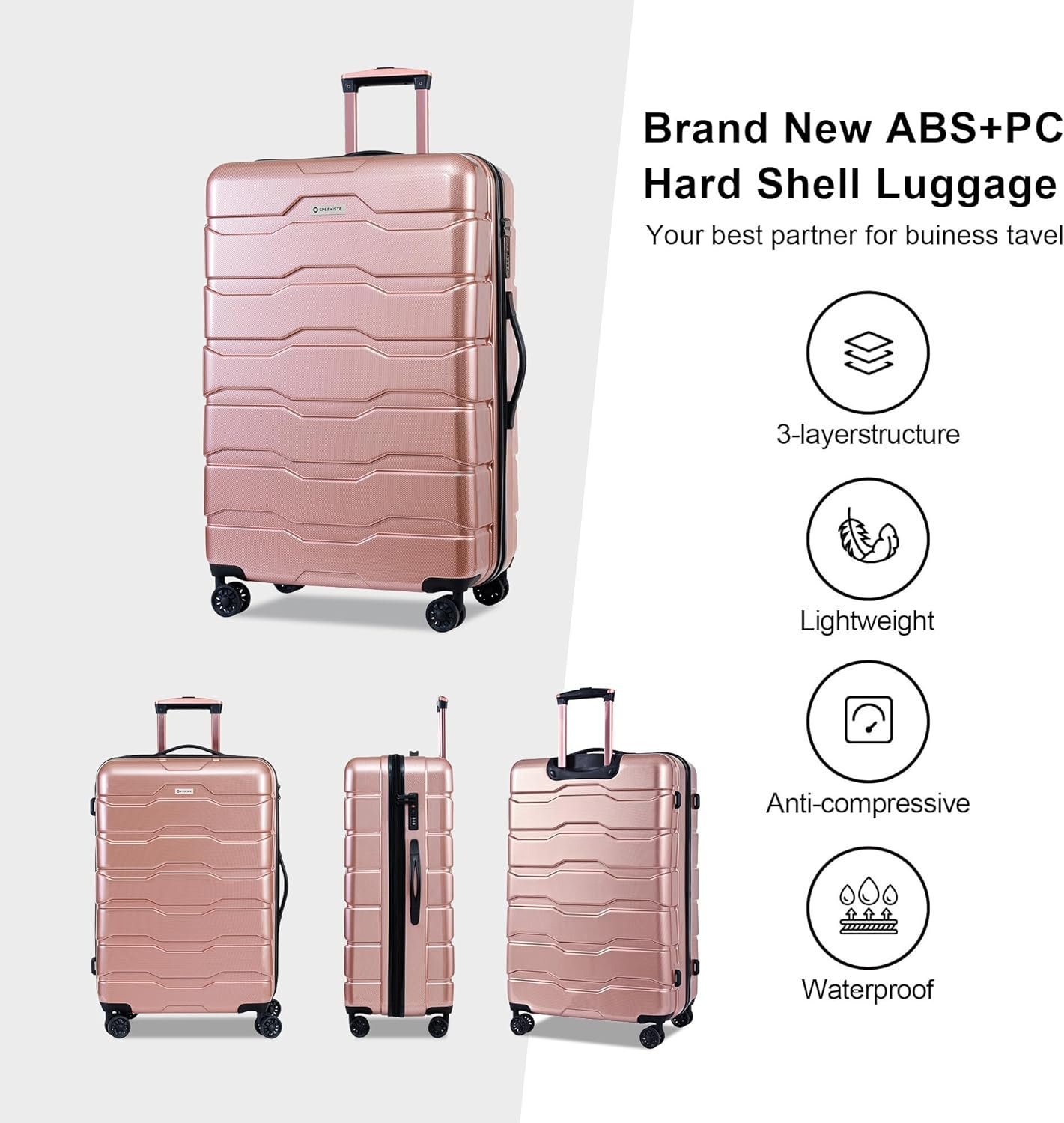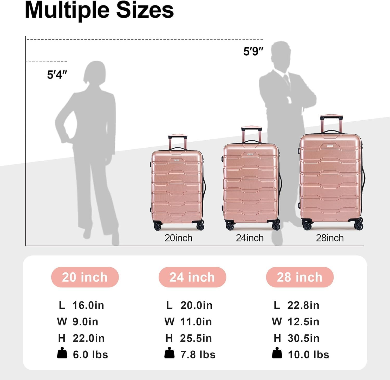 Luggage Set 3 Piece, PC+ABS Lightweight Suitcase Sets with Spinner Wheels, Hard shell Luggage Sets with TSA Lock RoseGold (20/24/28)