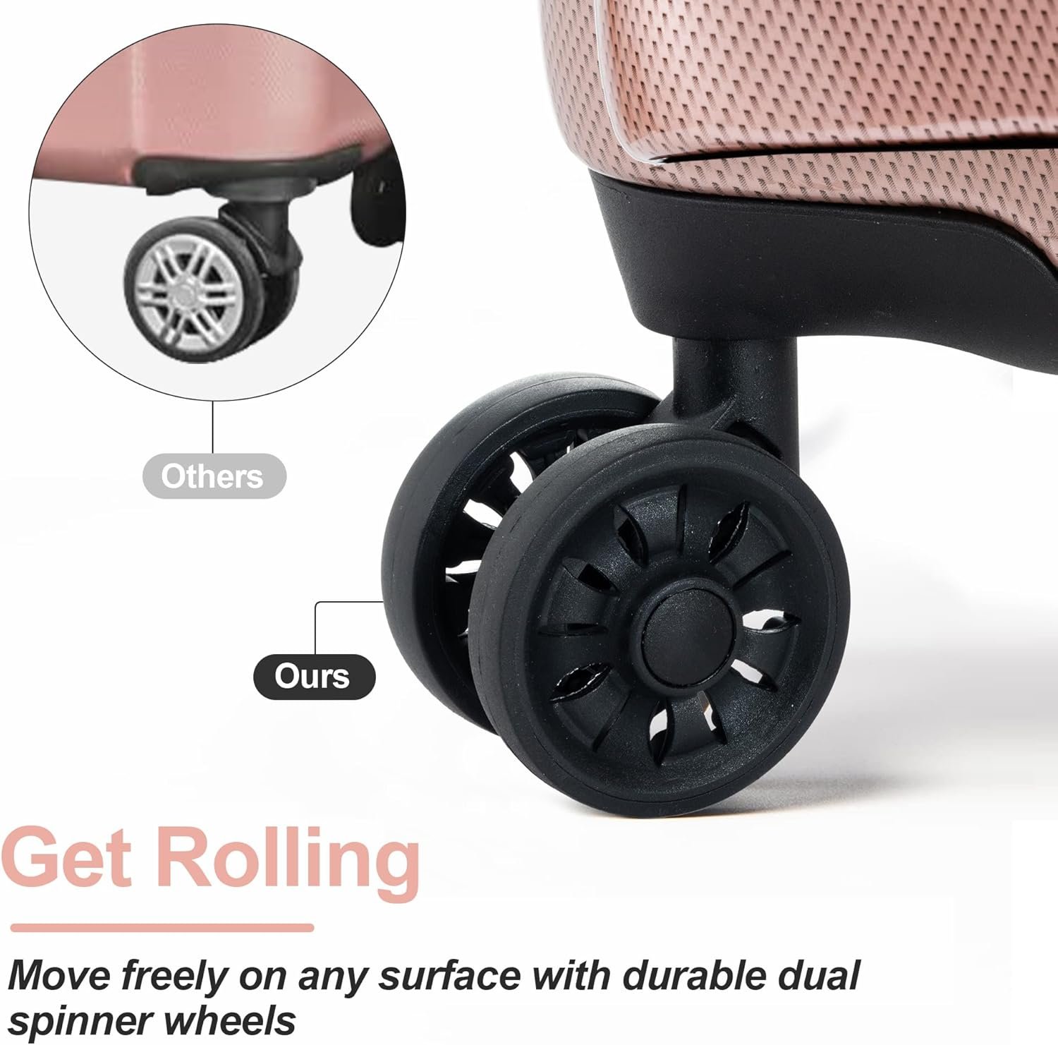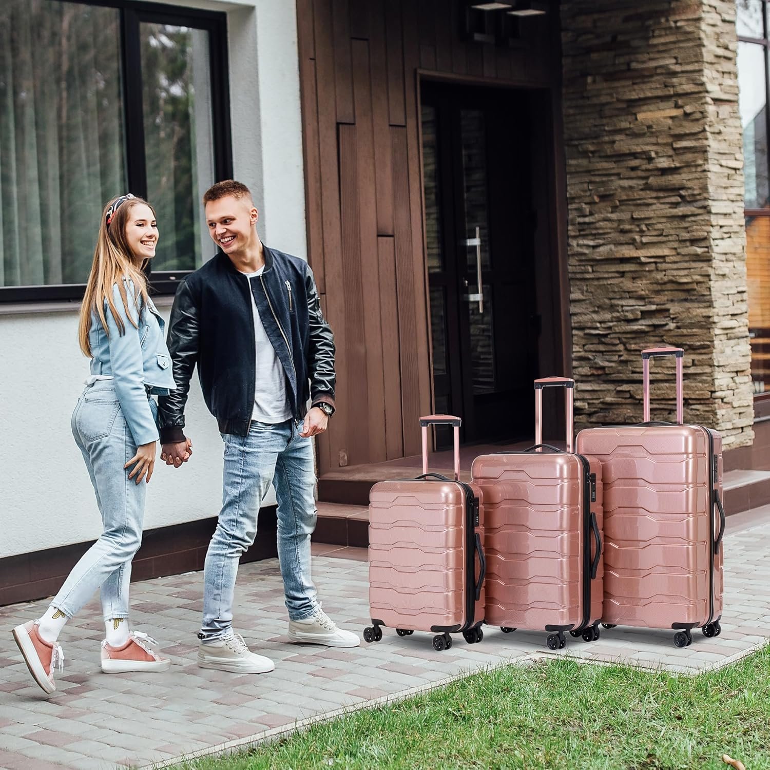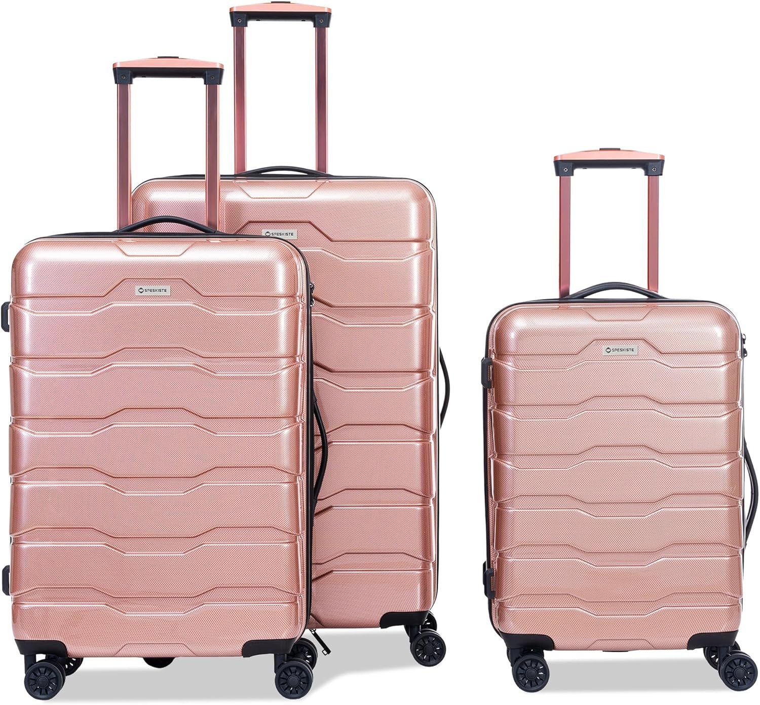 Luggage Set 3 Piece, PC+ABS Lightweight Suitcase Sets with Spinner Wheels, Hard shell Luggage Sets with TSA Lock RoseGold (20/24/28)