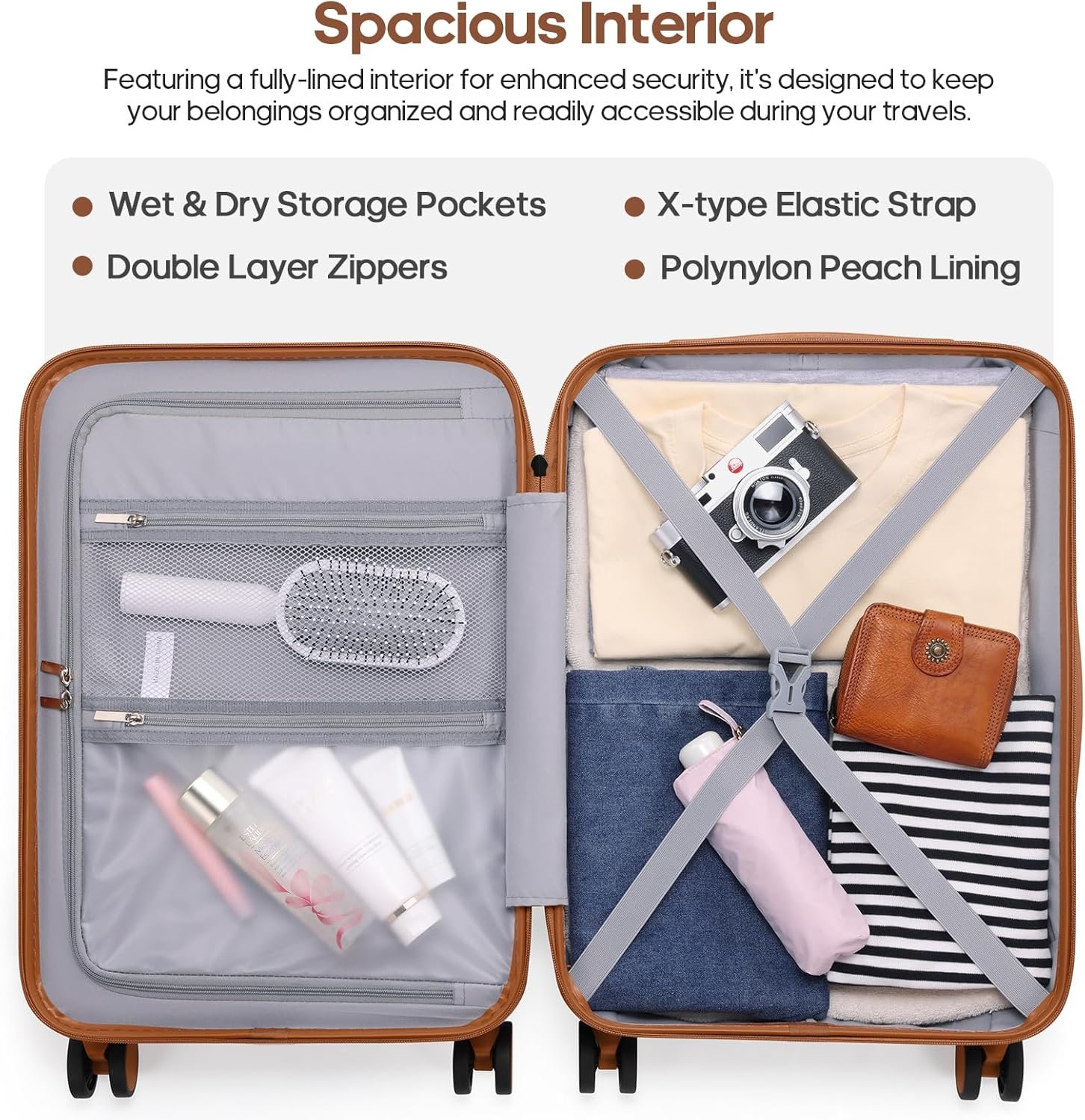 Lightweight but Durable : Made from 100% polycarbonate, this hardshell suitcase is scratch- and impact-resistant. After passing multiple rigorous tests, it’s built to withstand travel challenges, from rough airport handling to crowded terminals. Whether you’re using a luggage set or a carry-on suitcase, it ensures reliable protection for every journey.
