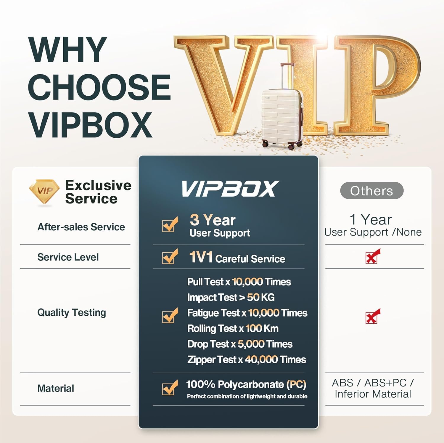 LUGGAGE SETS 3 PIECE, 3-YEARS GLOBAL VIP WARRANTY: Comfortable travel, worry-free use. These confidences come from Vipbox’s excellent standards, VIP exclusive 1V1 service and 3-years global User support. If you have any questions, please feel free to let us know. Where every mile counts