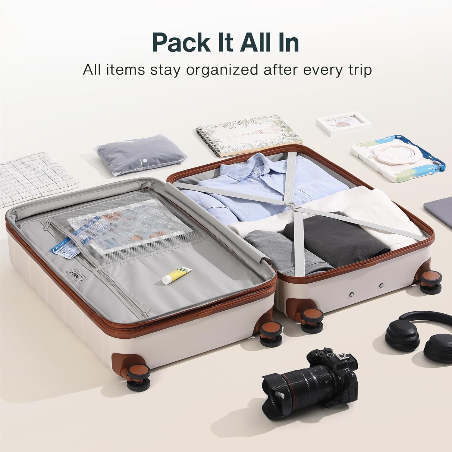 EXPANDABLE LUGGAGE LARGE CAPACITY, TRAVELER’S FAVORITE: 24″ and 28″ expandable +25% space, never bother packing the last few items again. Full zippered compartments and X-cross straps provide practical storage space for your items. Keep your items organized after every trip!