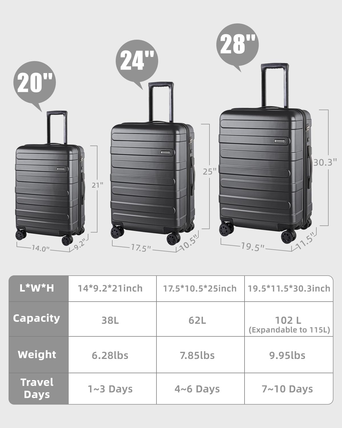 【Quality Luggage】: Our luggage is made of PC+ABS materials for hardshell, which make the luggage more durable, lighter and impact-resistant.