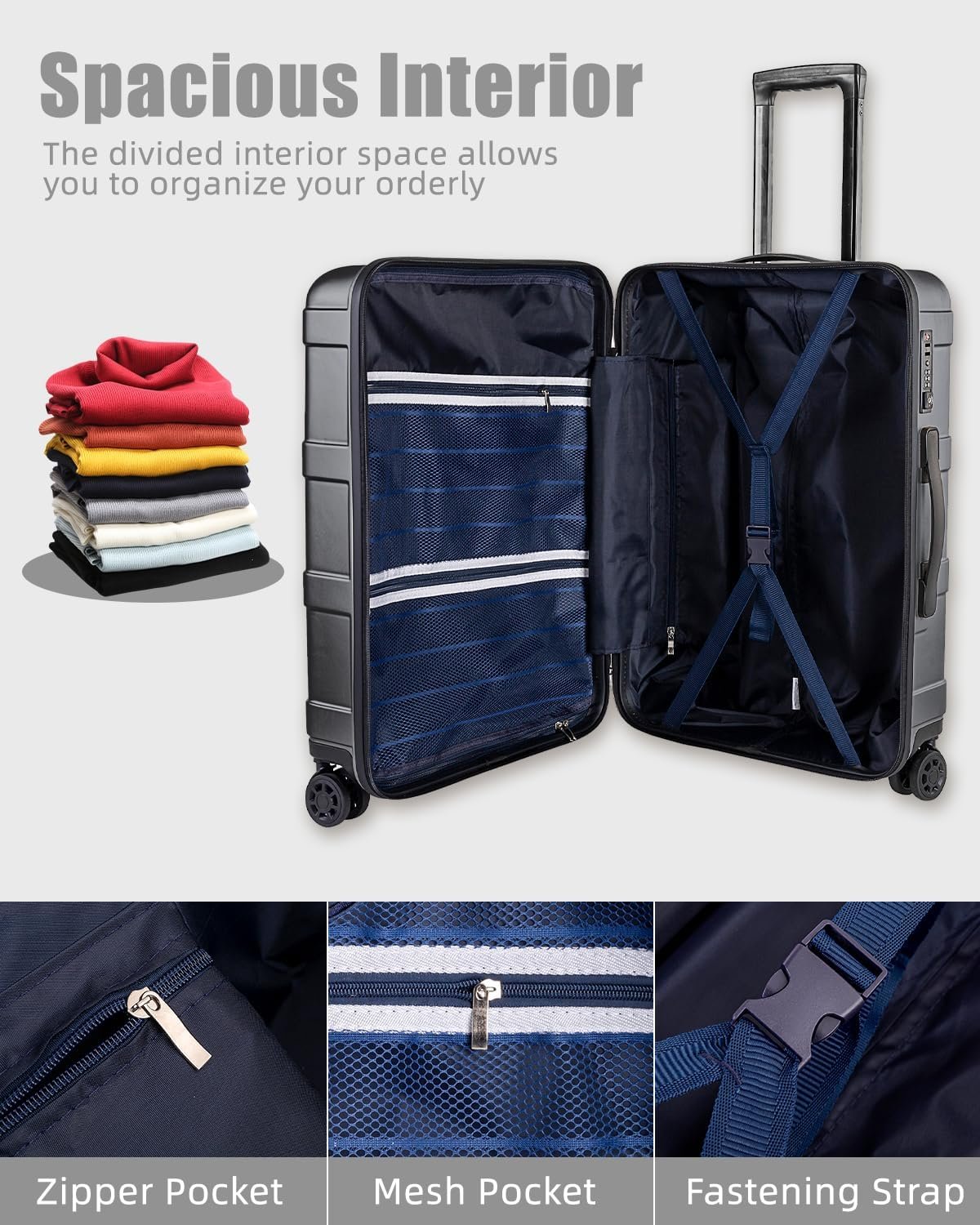 【Secure TSA lock】:TSA lock mounted on the side of the luggage compartment which allows only TSA agents to inspect your bags without damaging the lock when traveling.