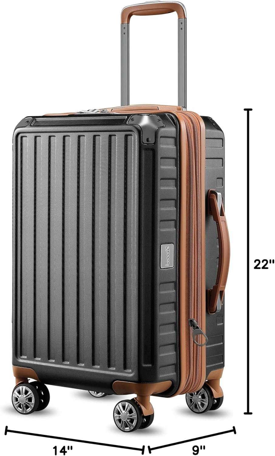 LUGGEX Carry On Luggage 22x14x9 Airline Approved, PC Expandable Hard Shell Suitcases with Spinner Wheels, 20 Inch, Brown Black