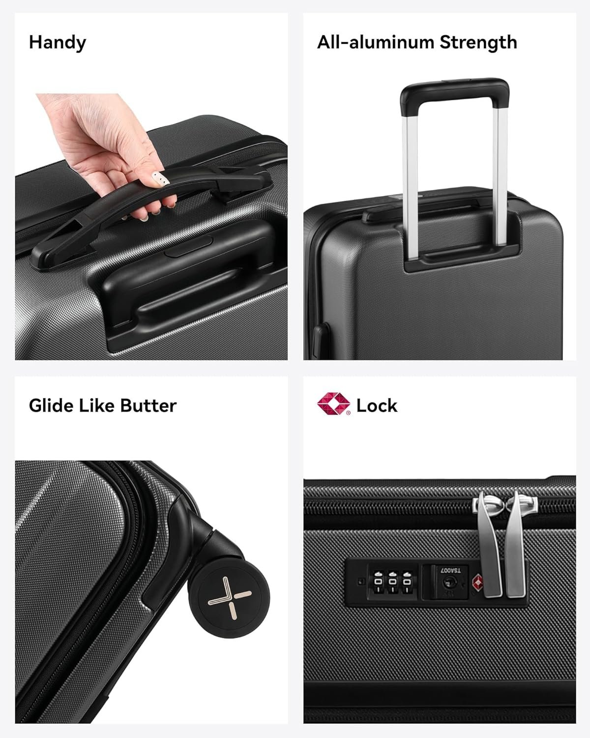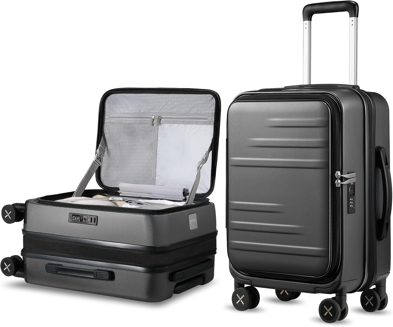 LUGGEX Carry On Luggage for Travel Front Opening, Expandable Polycarbonate Hard Shell Suitcase with Wheels for Men Women Chrismas Birthday(Charcoal Metallic, 19 Inch, 27.2L)