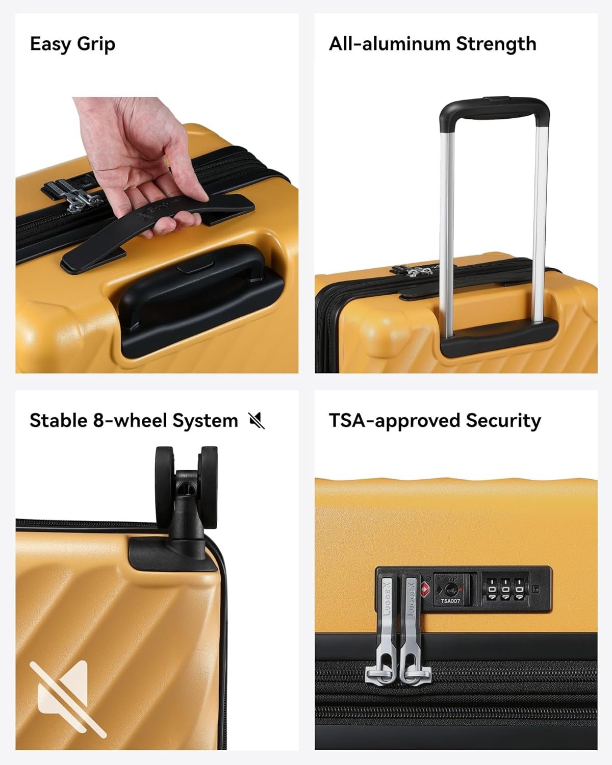 LUGGEX’s Commitment to Quality: LuggeX yellow suitcase comes with a free 3-year protection plan. Our dedicated customer service team is ready to assist you within 12H if you encounter any issues with our reliable travel suitcase.