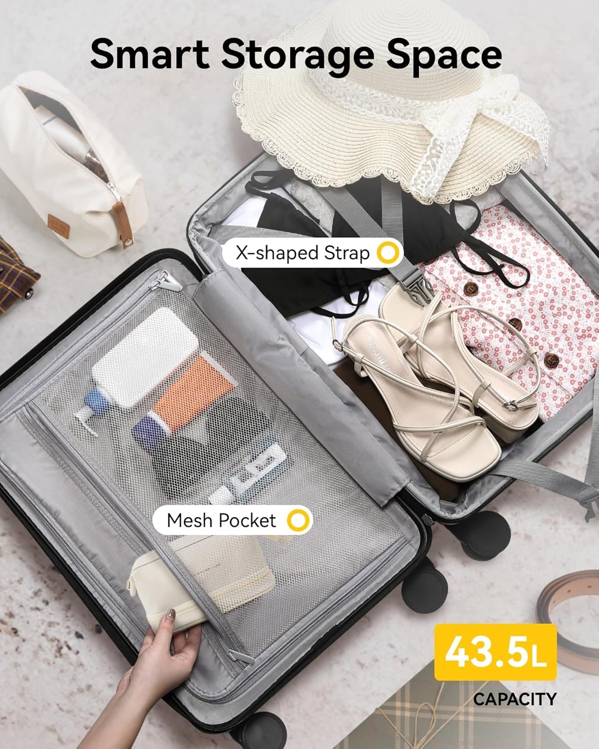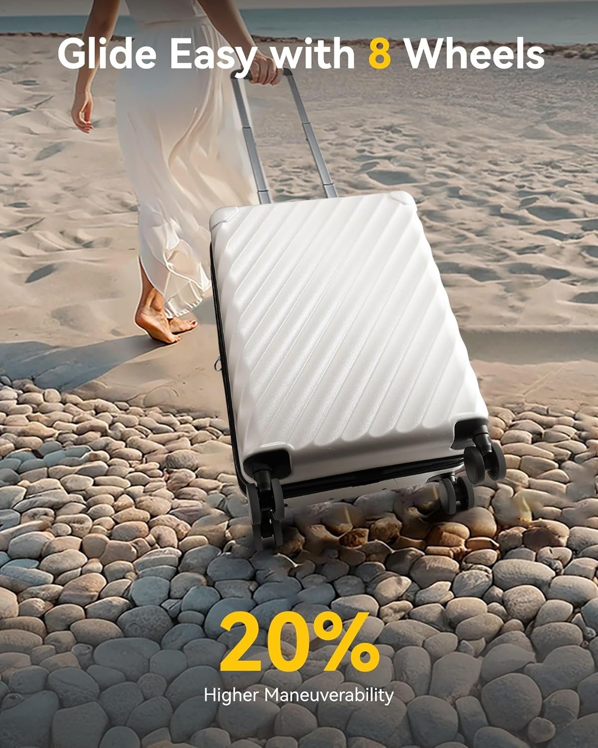Glide with 360° Ease: The carry on suitcases with wheels features 8 silent spinner wheels that rotate smoothly in every direction, allowing you to maneuver through busy airports, cobblestone streets, or hotel lobbies, fluid movement wherever you go.