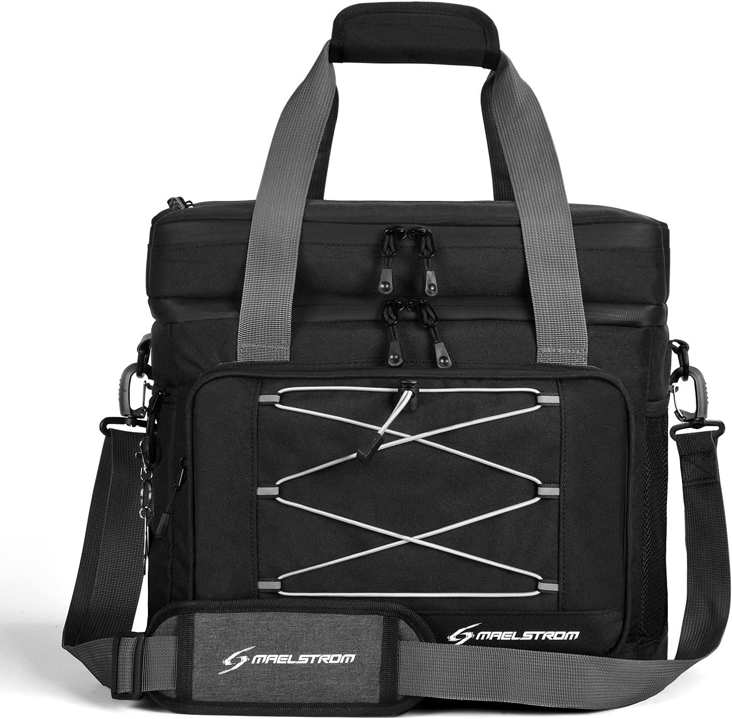 DOUBLE-DECKER UNIQUE DESIGN – Great design that can be stored easily. Besides the extra large main bag, Maelstrom designed a foil insulated top compartment to store sandwiches, frozen food, fruits, food essentials or utensils. Because of the reinforced layers, this cooler bag can be folded flat and stowed easily in your trunk or under a car seat. Convenient to carry around!