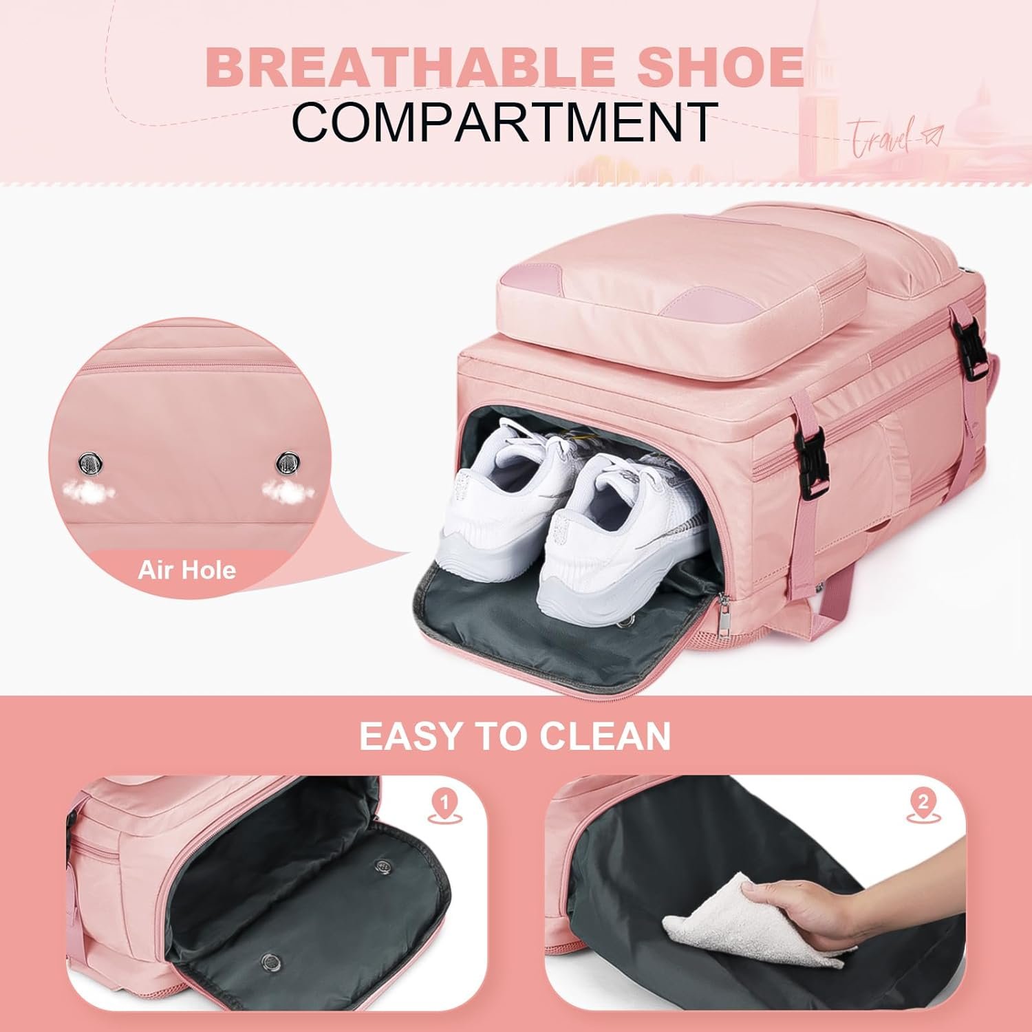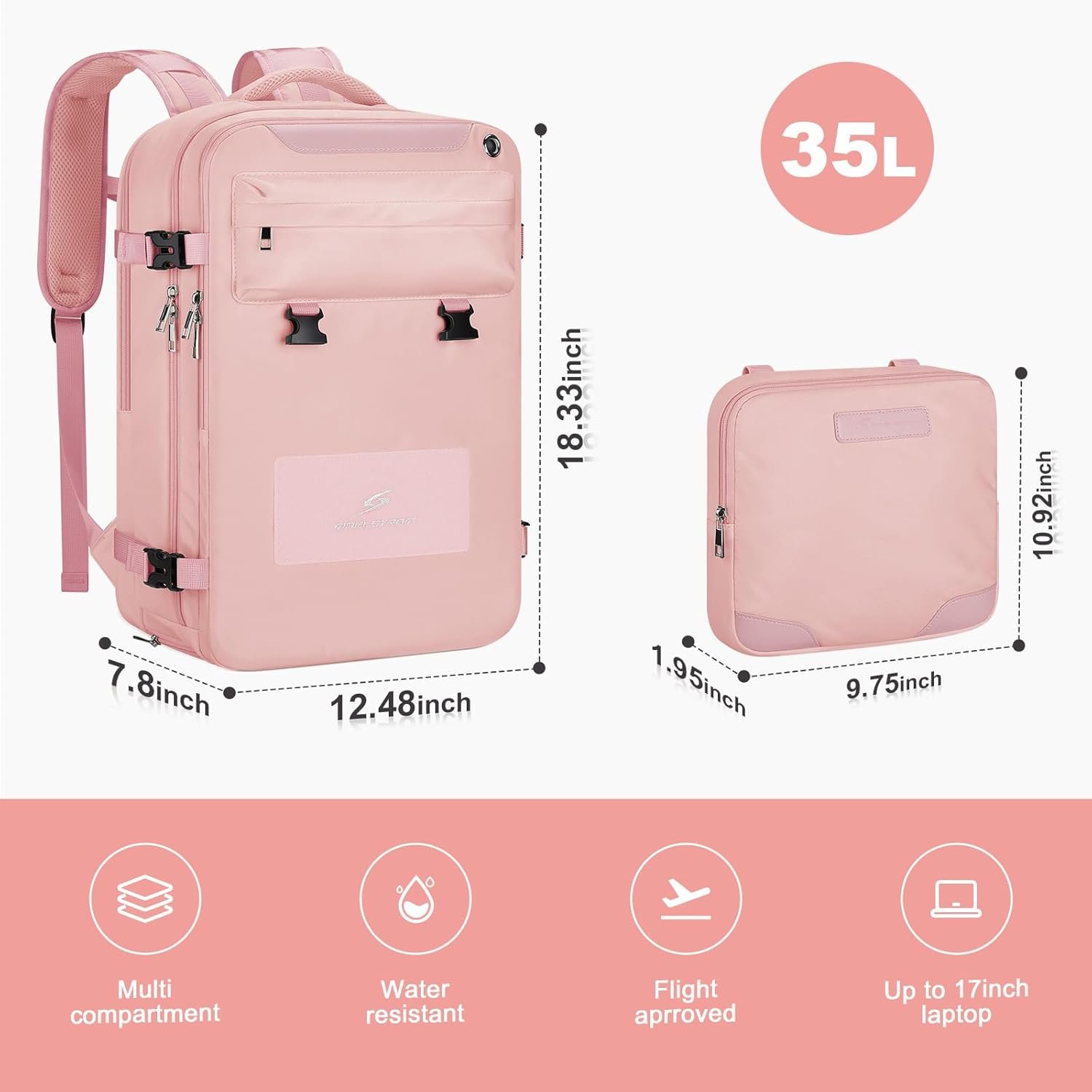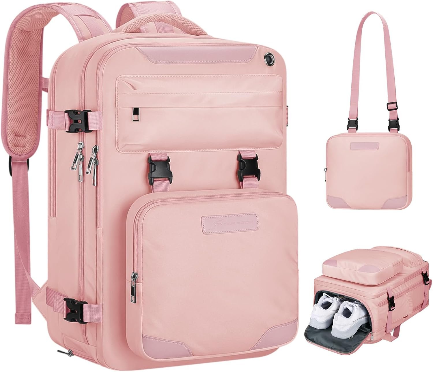 Maelstrom Travel Backpack for Women Men,35L Laptop Backpack Fits 17-Inch Laptop,Waterproof Carry On Backpack for Airplanes with Detachable Crossbody Bag&Shoe Compartment,Pink
