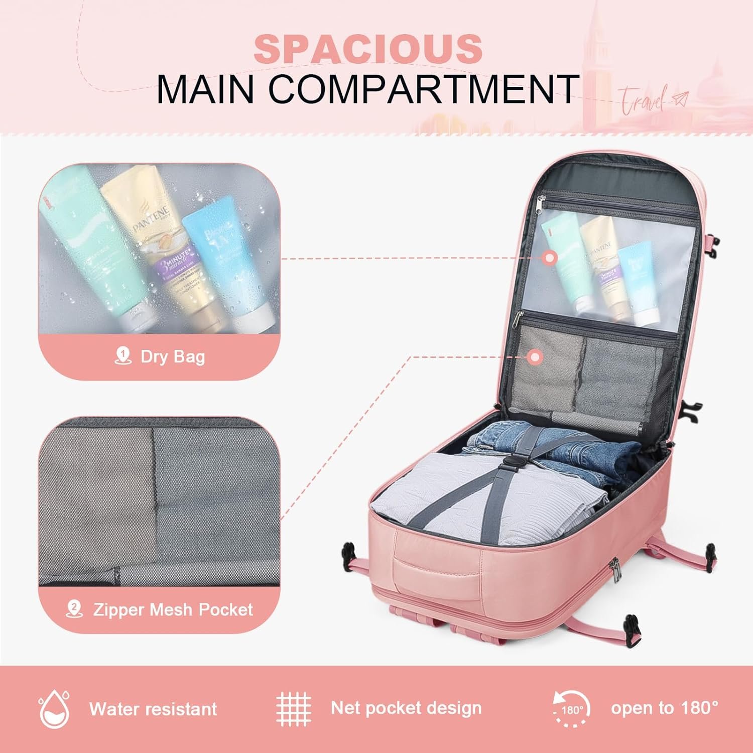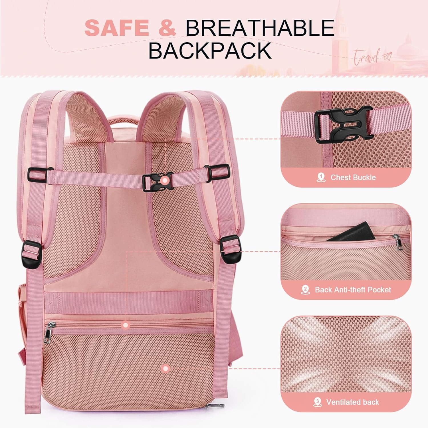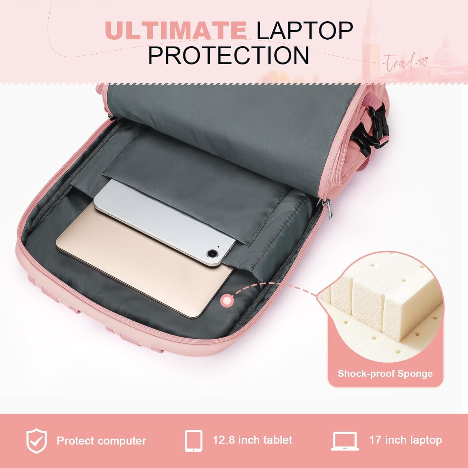 Maelstrom Travel Backpack for Women Men,35L Laptop Backpack Fits 17-Inch Laptop,Waterproof Carry On Backpack for Airplanes with Detachable Crossbody Bag&Shoe Compartment,Pink