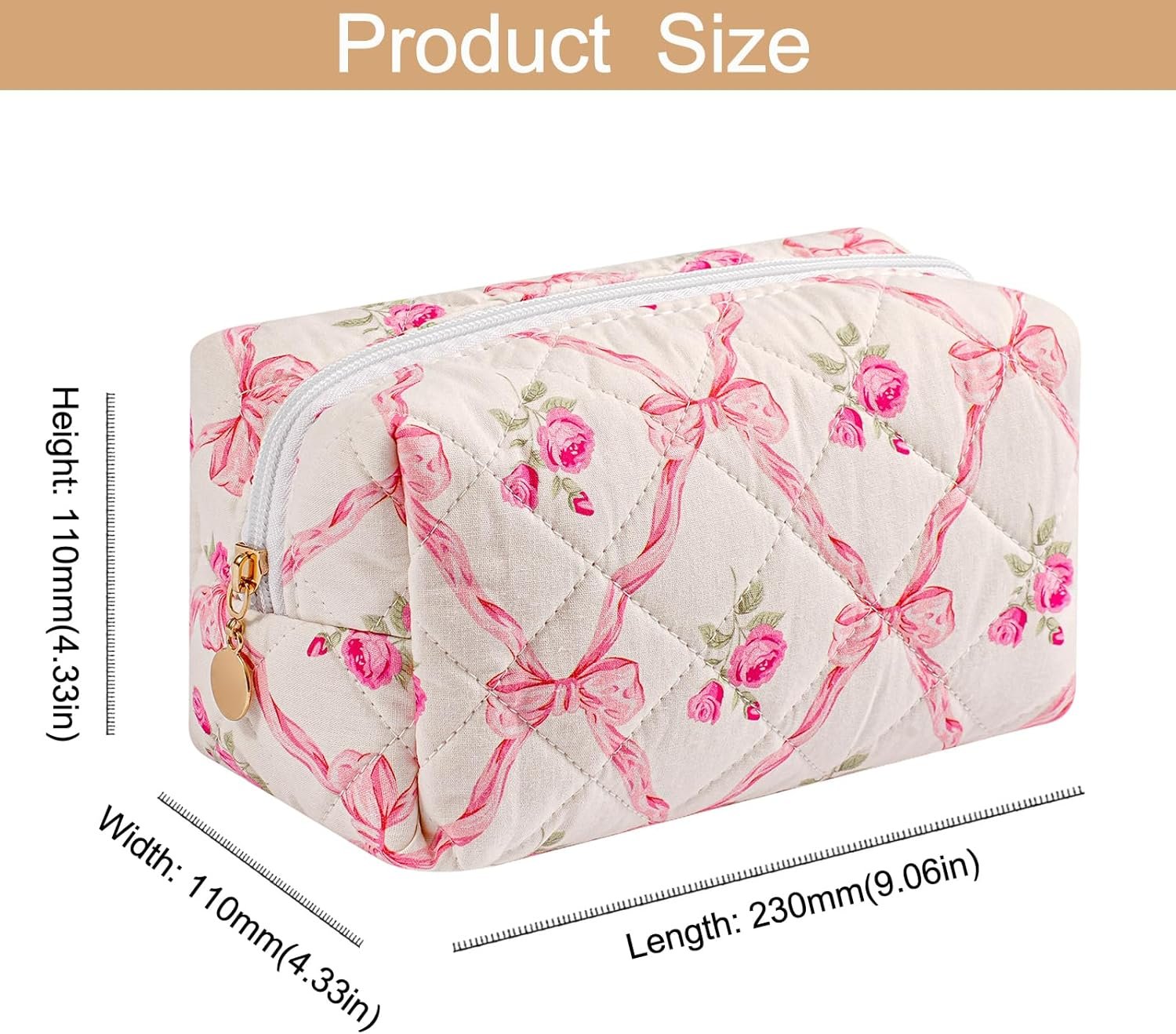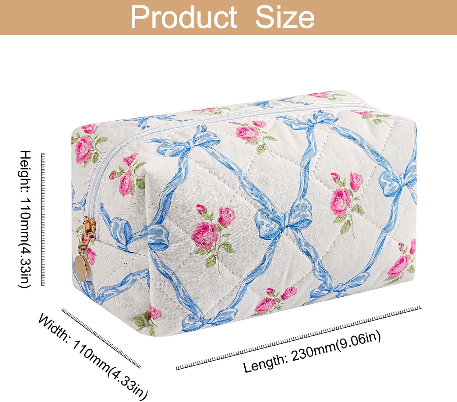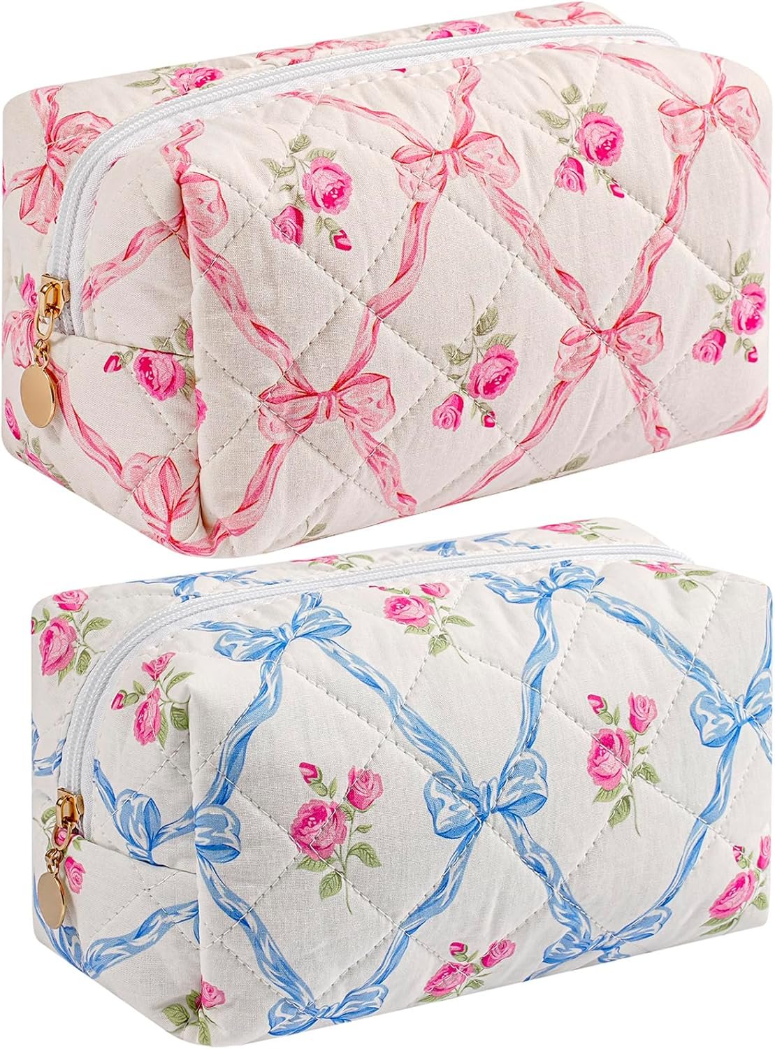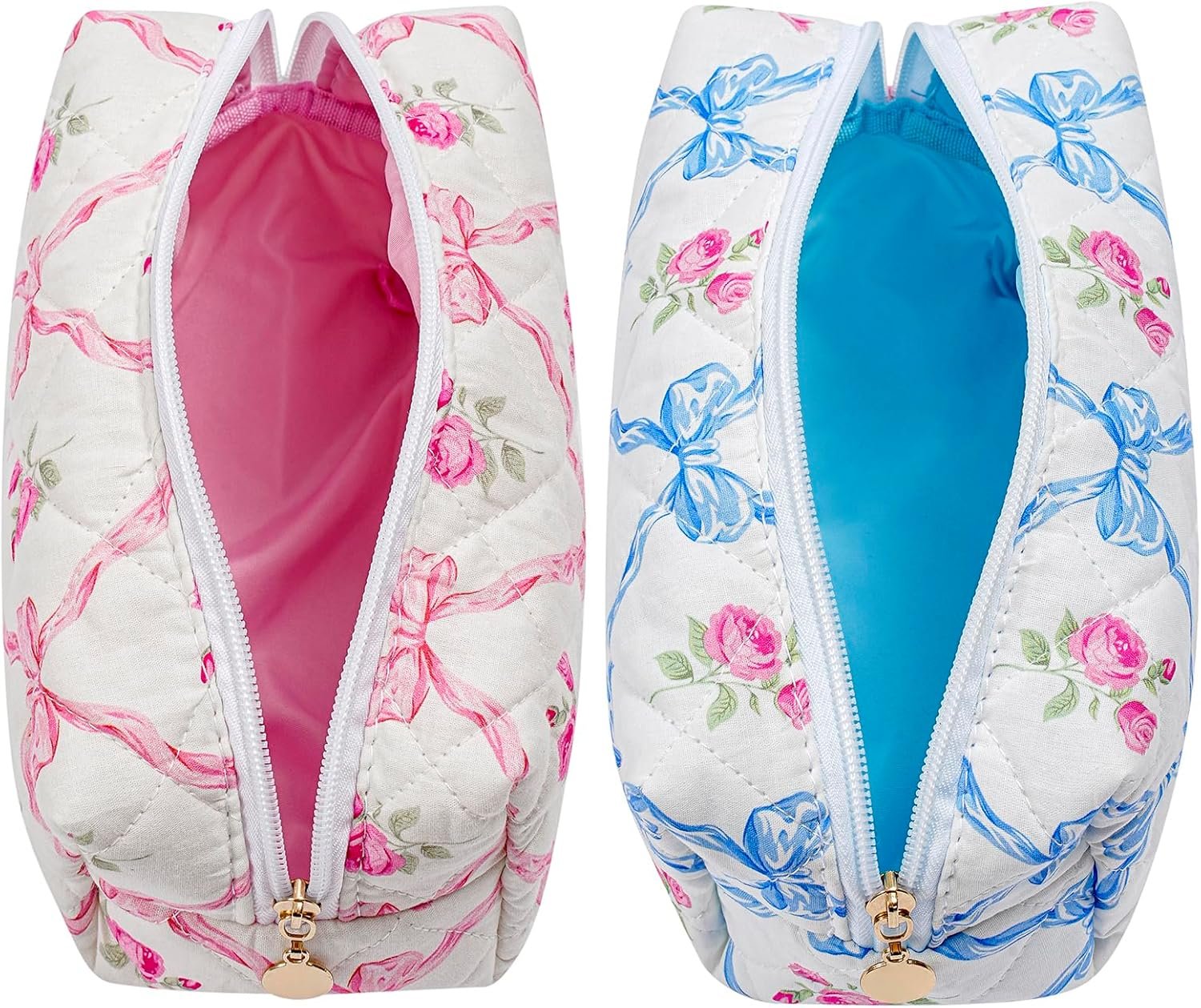Makeup Bag Travel Cosmetic Bag for Women Girls, Zipper Make Up Pouch, Floral Flowers Toiletry Organizer Makeup, Portable Storage Bag, Cosmetic Travel Cloth Bag (Pink Bowknot+Blue Bowknot)