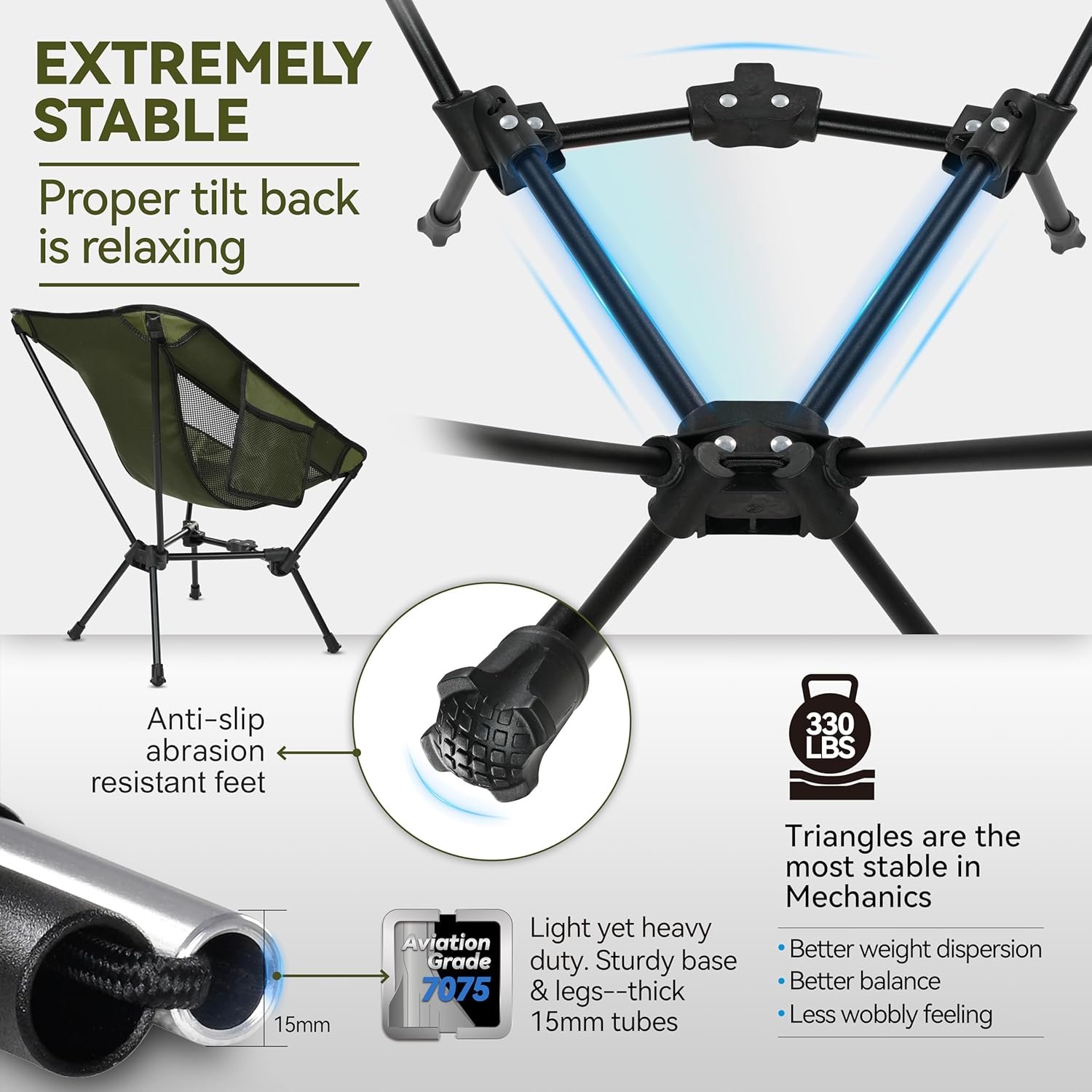 MARCHWAY Lightweight Folding Camping Chair, Stable Portable Compact for Outdoor Camp, Travel, Beach, Picnic, Festival, Hiking, Backpacking, Supports 330Lbs (Green)