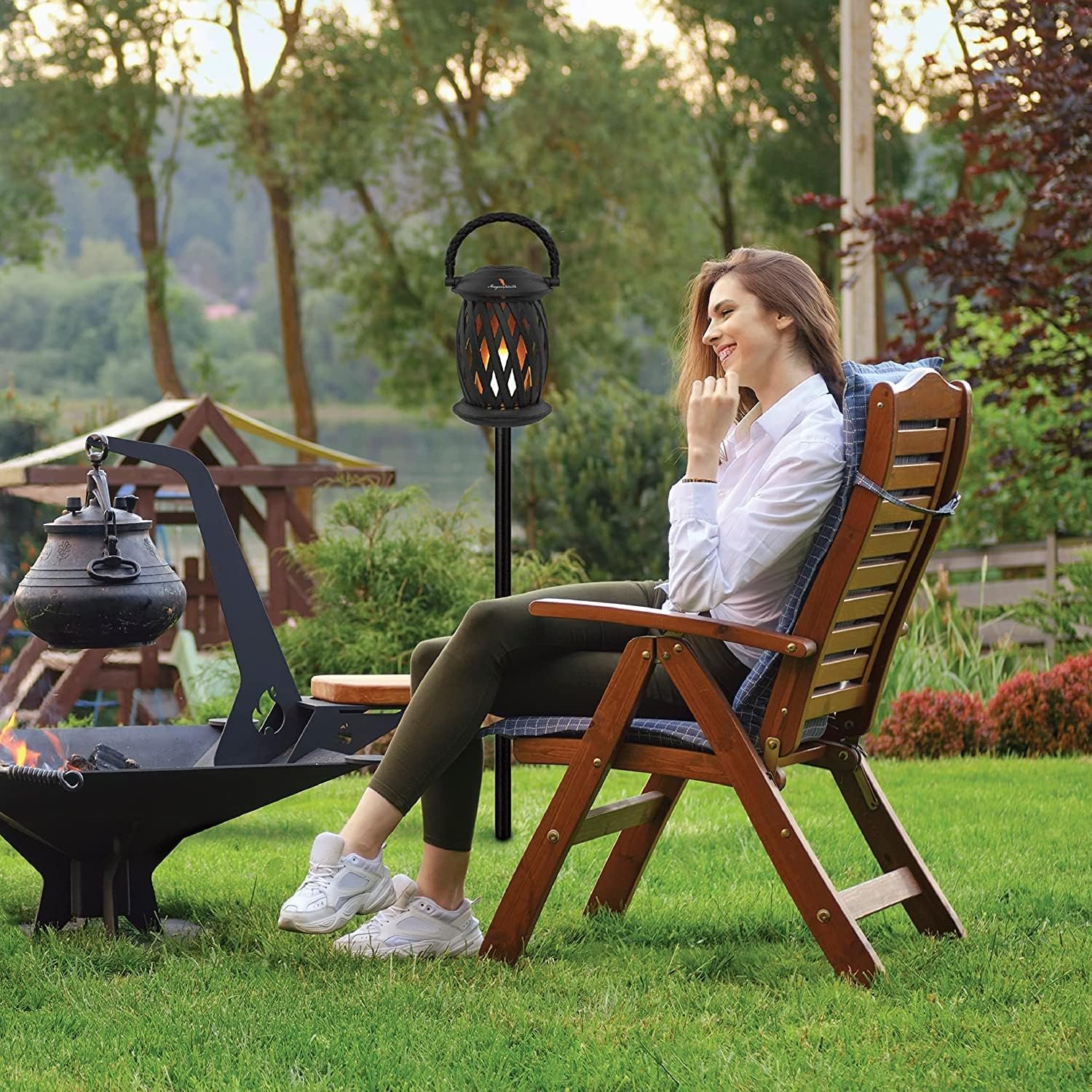 Long Battery And Easy To Pair: Our Bluetooth outdoor speakers can provide up to 11 hours of lighting, 22 hours of music, or 7 hours of both. It’s suitable for use with most Bluetooth devices and can be paired with another torch speaker to amplify the sound.