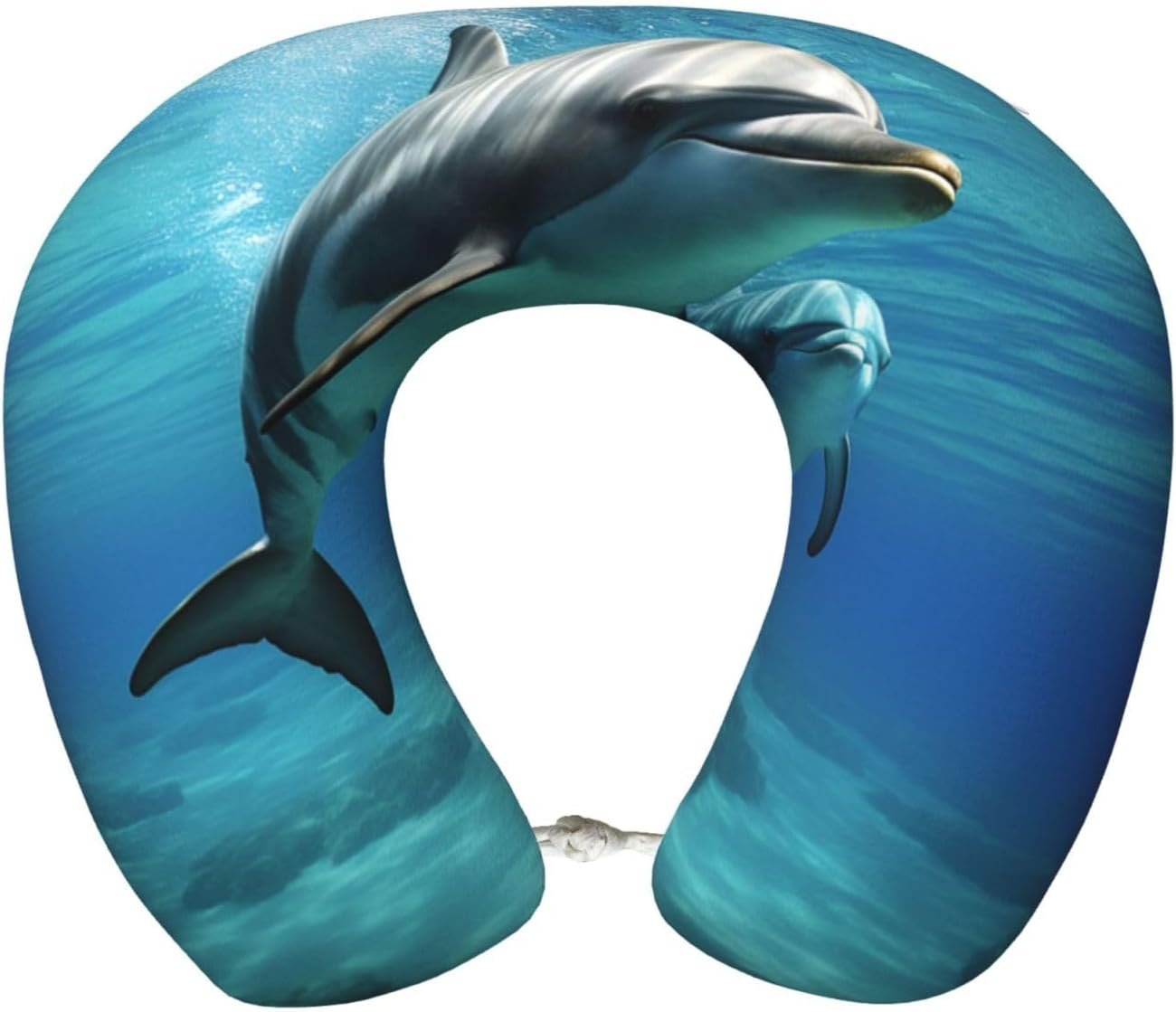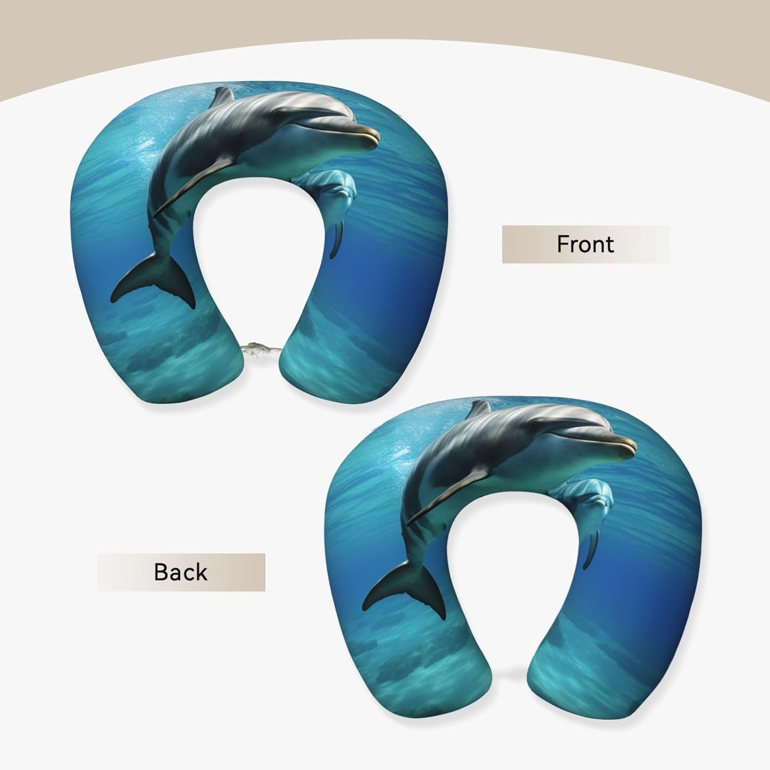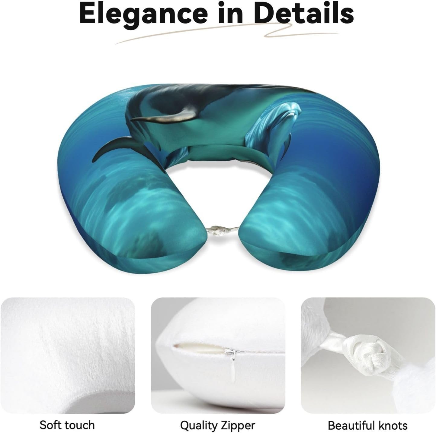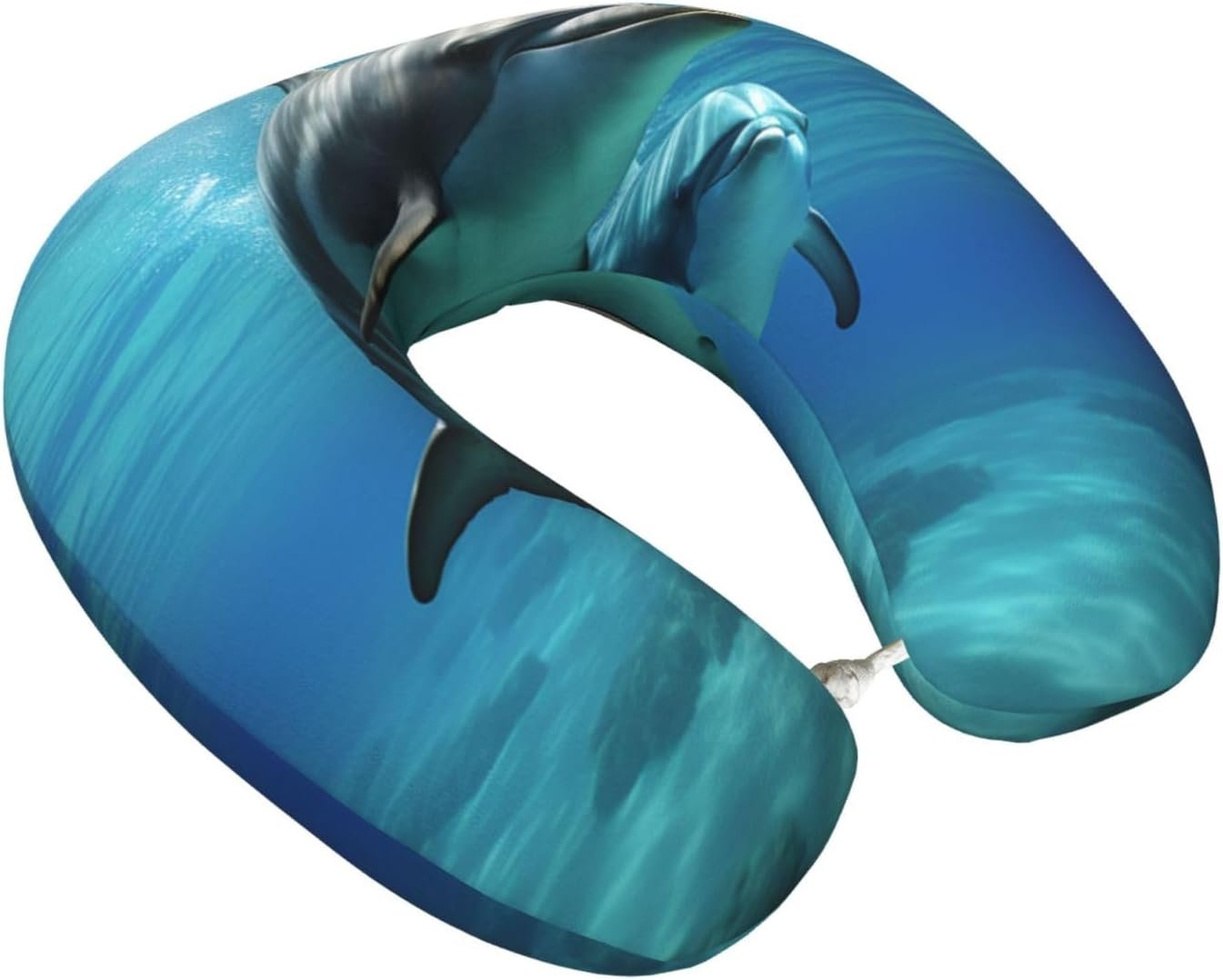 Marine Dolphin Memory Foam Travel Pillow Soft Comfortable Neck Pillow U-Shaped Head Support Pillow Travel Accessories for Sleeping Rest Airplane Car and Office