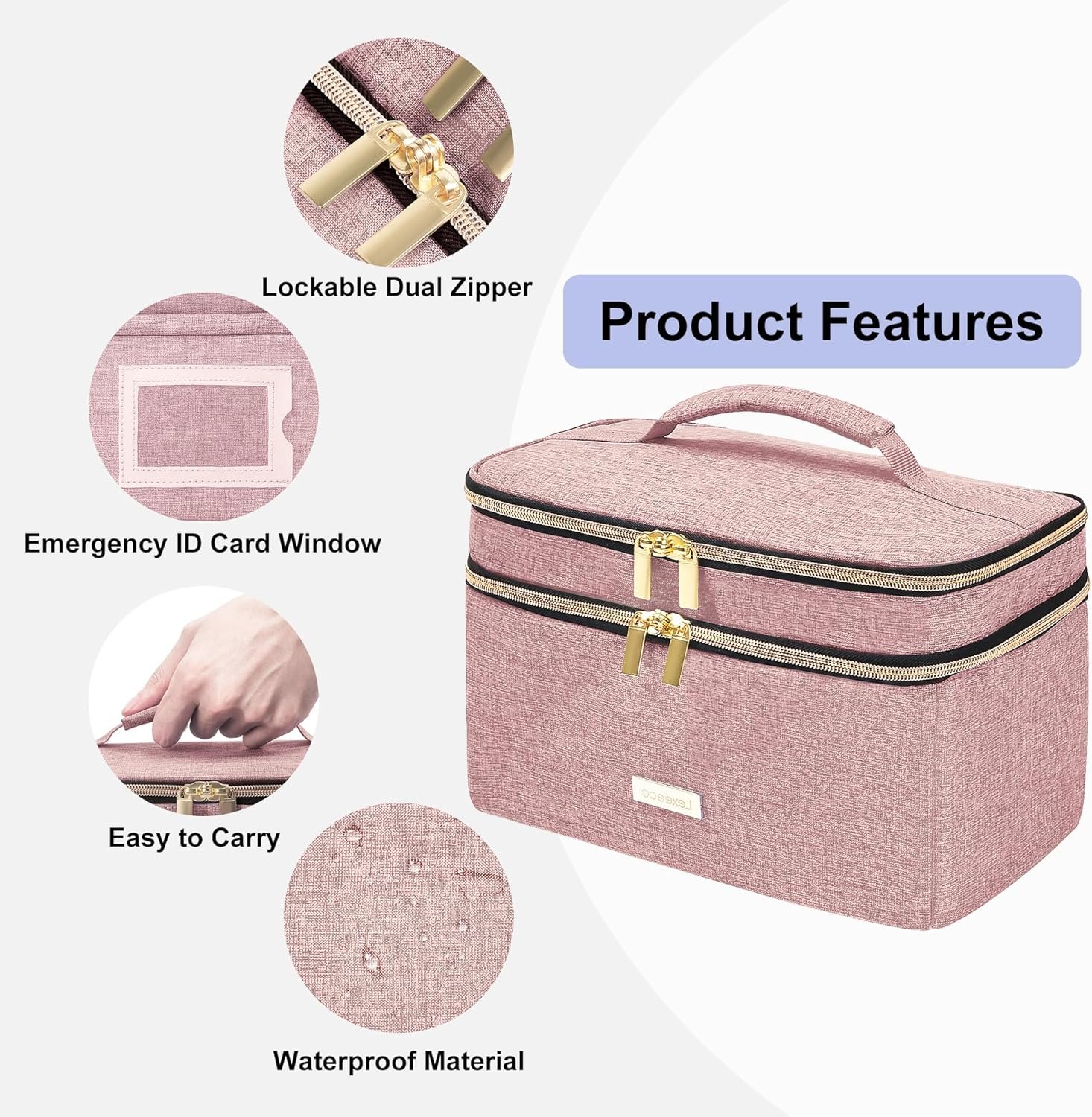 Durable & Safety:Water resistant,durable fabric and well-padded design to keep full bag’s shape and provide great protection. Sturdy stitching and heavy duty material and it can stand up many items. Equipped with a double zipper which can be locked, you can choose the lock you like to lock it, ensuring your medication is safe.