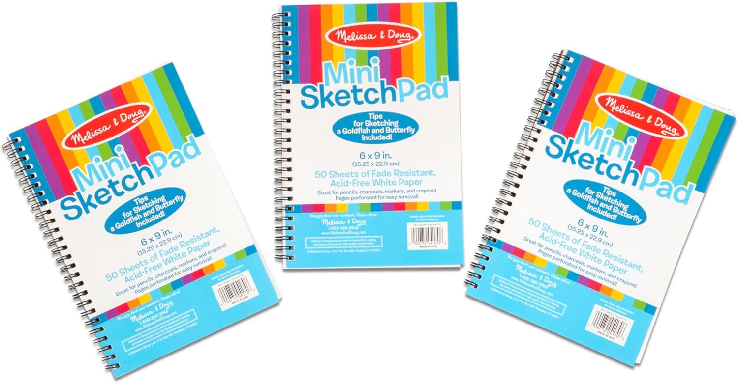 Nothing is better for art-on-the-go than these wire-bound pads of professional quality paper. Sketch artists, of every age, will appreciate the handy size and the smoothly tearing edge. They even comes with two sketch starters inside the front cover!. For more than 30 years, Melissa & Doug has created beautifully designed imagination- and creativity-sparking products that NBC News called “the gold standard in early childhood play.” We design every toy to the highest quality standards, and to nurture minds and hearts. If your child is not inspired, give us a call and we’ll make it right. Our phone number is on every product!