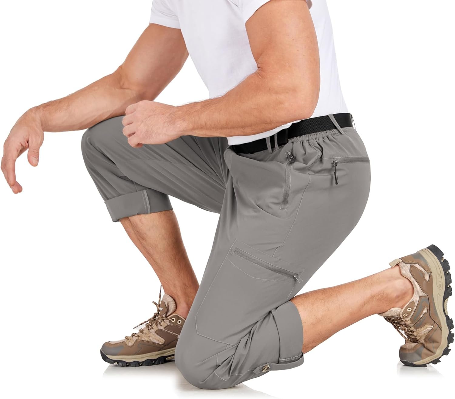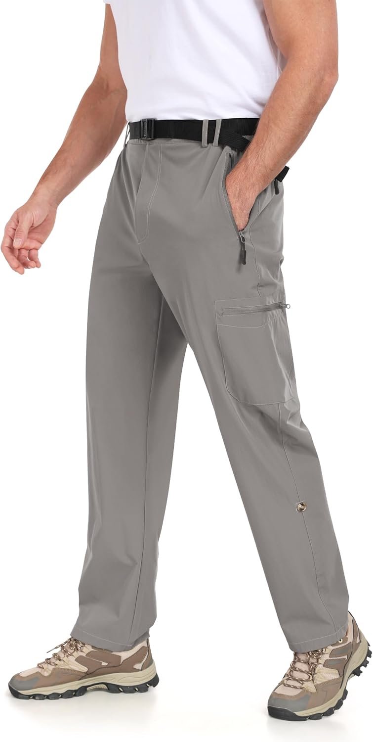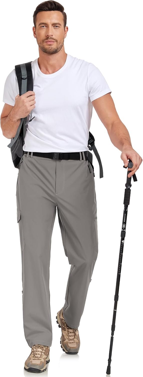 Men’s Hiking Cargo Pants Lightweight Tactical Pants Waterproof Travel Work Outdoor Pants with Belt Multi Pockets