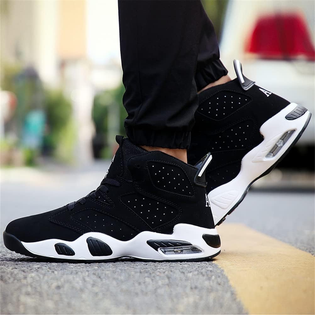 The upper is made of premium synthetic leather, featuring with excellent softness and flexibility, to ensure that your feet fit tightly and feel more free.Men’s fashion sneakers with mid-top design, fit the ankle better, Stylish front and rear pull tabs, you can wear them easily.Air cushion sole, Provide excellent support and unprecedented cushioning for your feet to maximize comfort and reduce foot fatigue.Lightweight support and breathable that make your foot always keeps dry and cool, These shoes can follow you to walk and stand for a long time, suit for all-day to wear.Stylish Shoes for men, can match with outfit or shorts. Suitable for casual walking, workout, hip hop, playing basketball, hiking, walking the dogs or any outdoor or indoor activities, etc.
