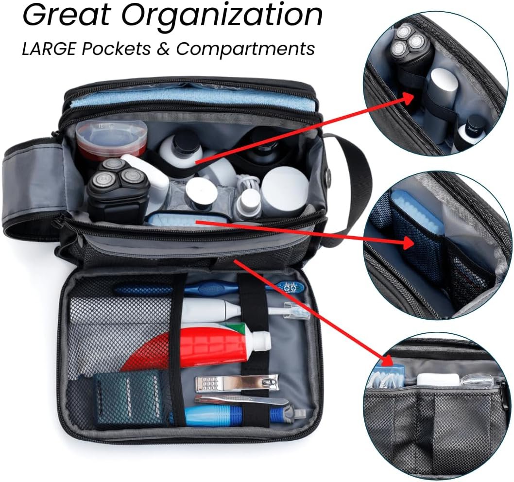 Enhanced Storage: You can keep your toiletries well organized with multiple compartments in this large toiletry bag; it offers the convenience of a personal item grooming bag for men, allowing travelers to store and access their requirements efficiently