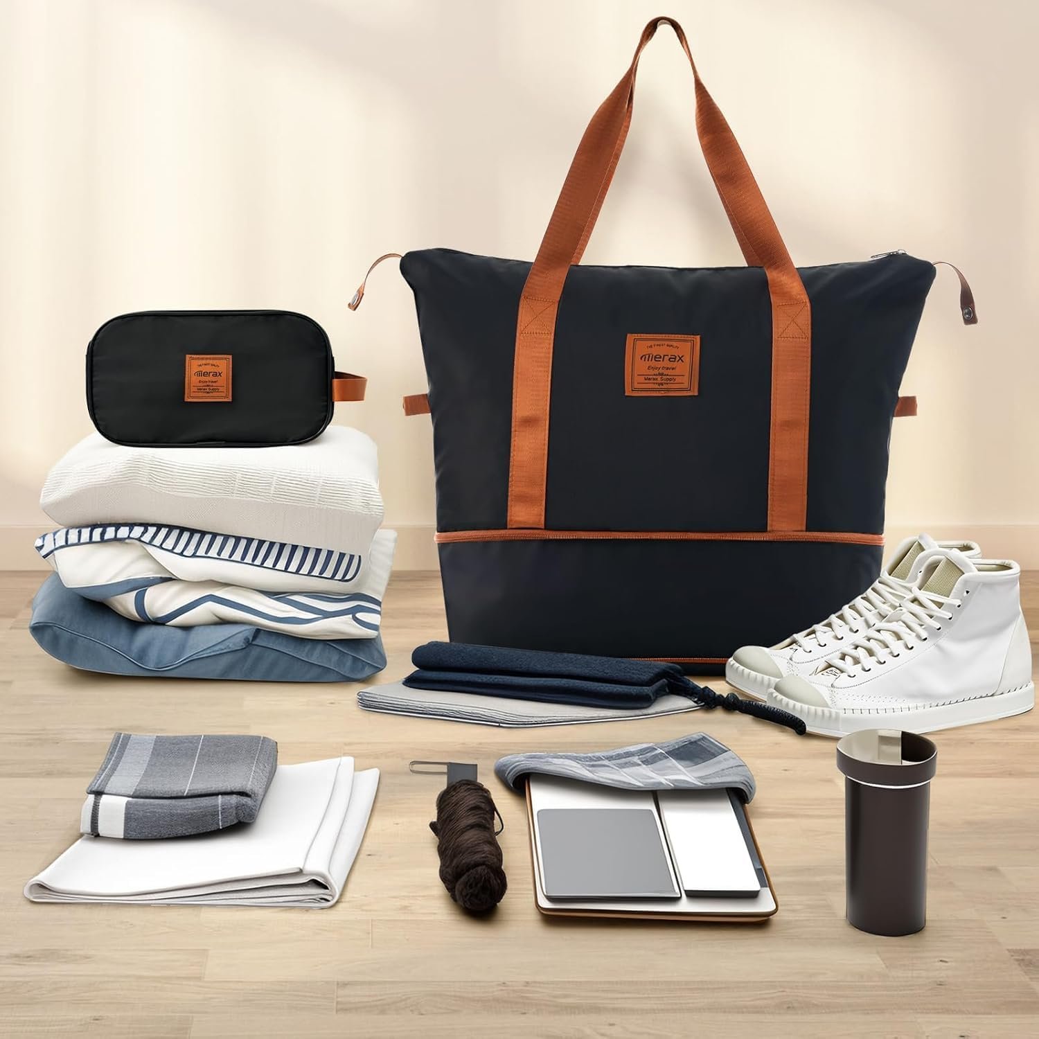 【Expandable Duffel Bag】longest length: 21.7″, shortest length: 15.7″, width: 8.3″, height: 13″, expanded height: 17.7″. Travel duffel bag features a trolley sleeve with a zippered pocket that easily slides over the luggage handle. Weekender bag can be expanded to hold more items. Perfect travel bag, gym bag.