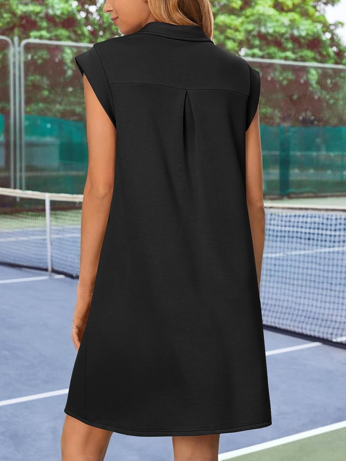 Designed for those balmy days and breezy evenings, this dress features a casual collared v-neck design that adds a touch of sophistication and keeps comfort during the hottest months.