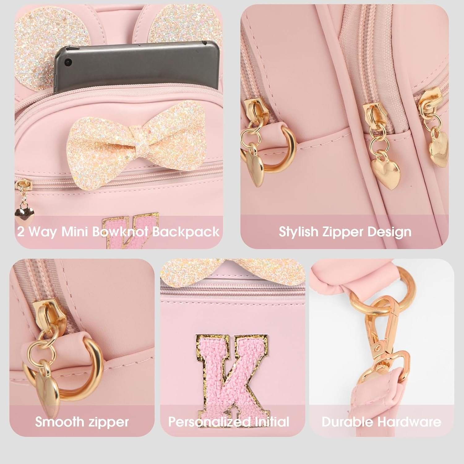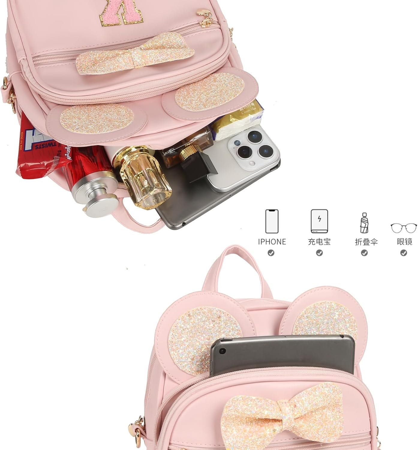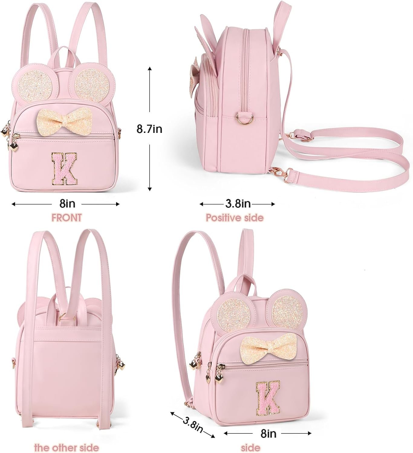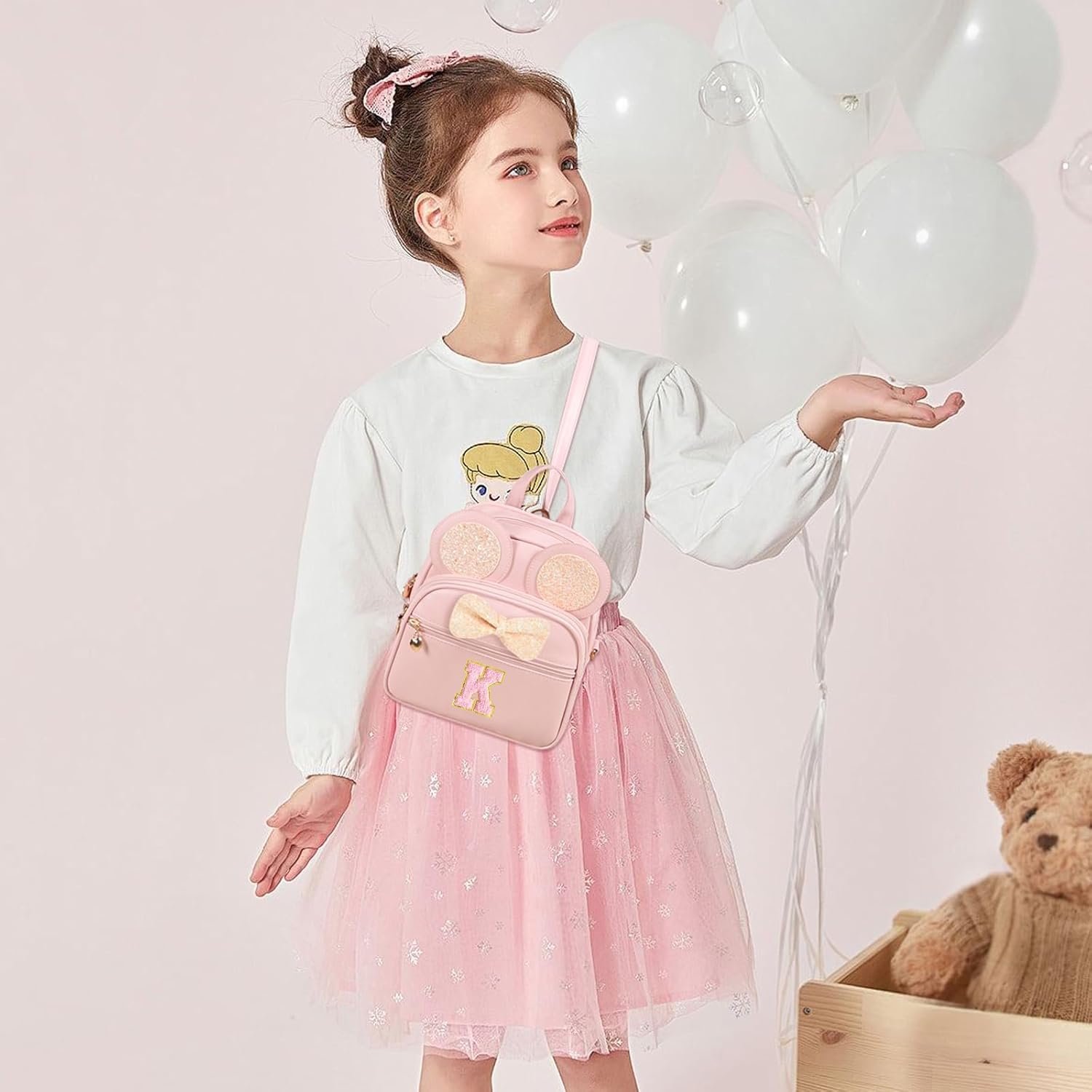 【Unique Design】More than just a girls Mini Backpack, it’s a canvas for self-expression! Each little girl purse is uniquely crafted with a personalized touch, featuring a carefully sewn alphabet. The cute mouse ear and charming bow decoration, ensure your princess dress up stands out in style.