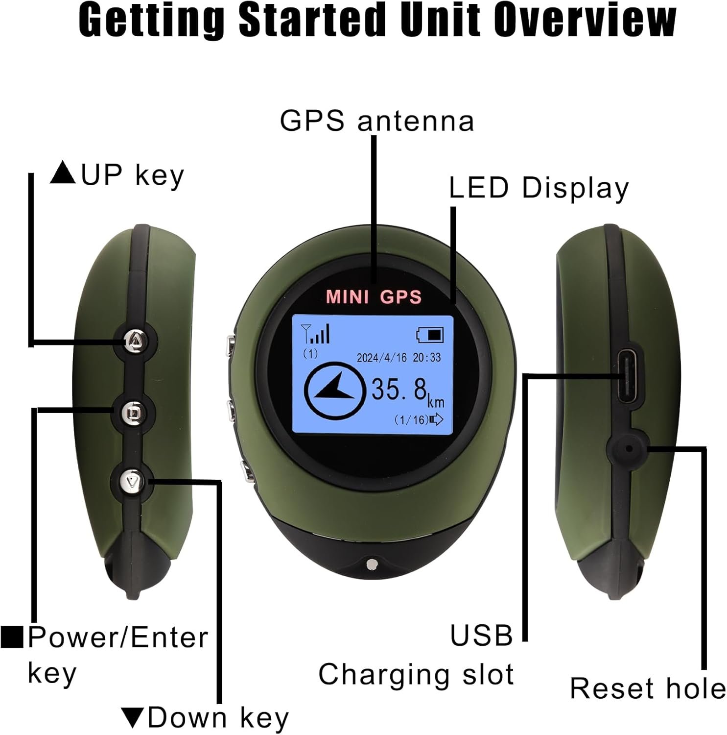 Mark Waypoints and Navigate Easily: Save up to 16 Points of Interest (POI) for convenient navigation. Whether you’re hiking, camping, or exploring trails, the Mini GPS ensures you’ll always find your way back