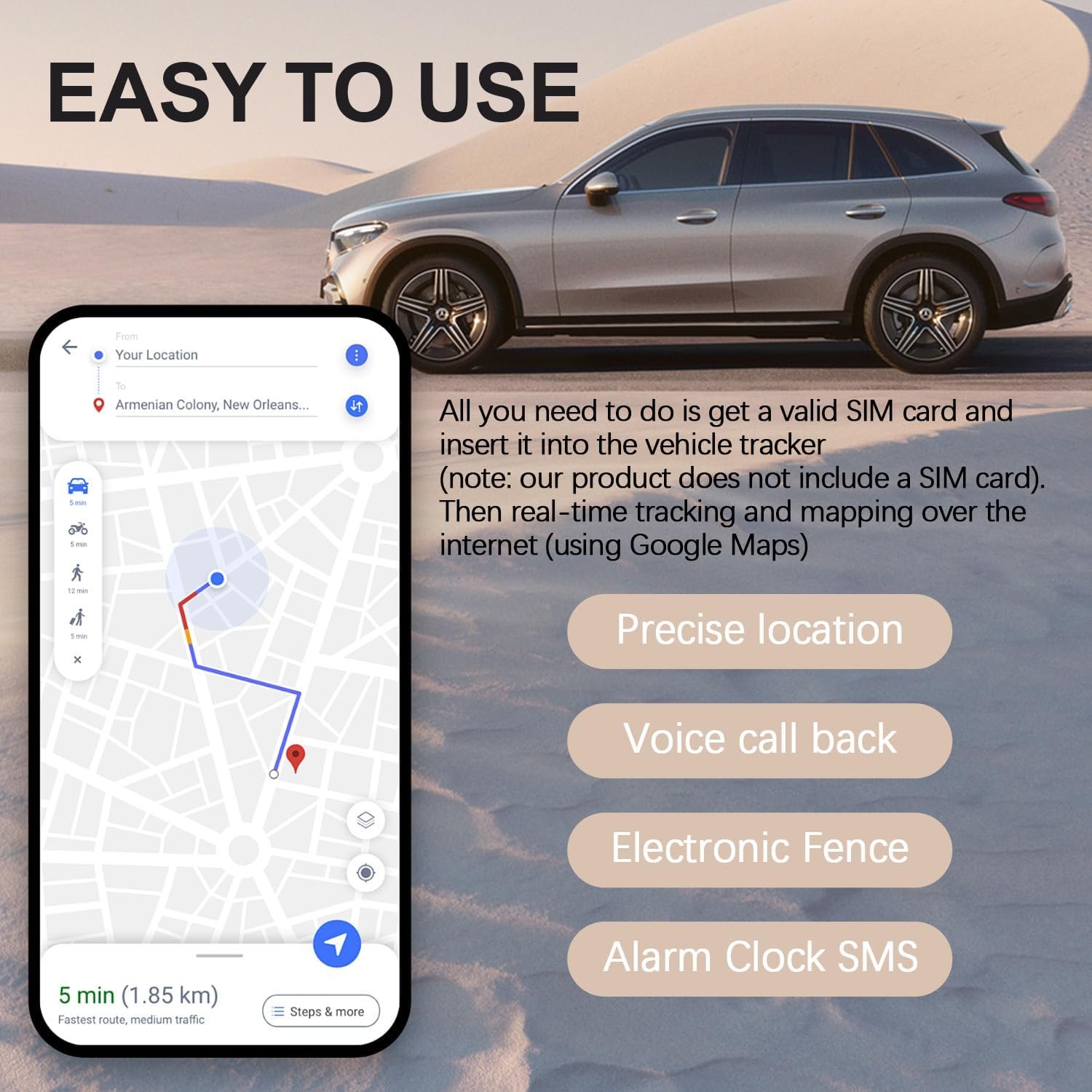 Effortless Setup: Simply insert a valid SIM card (not included), place the gps trackers in your vehicle, and commence real-time monitoring with APP. Choose from update intervals of 30 seconds, 1, 5, or 10 minutes for seamless tracking that fits your needs.