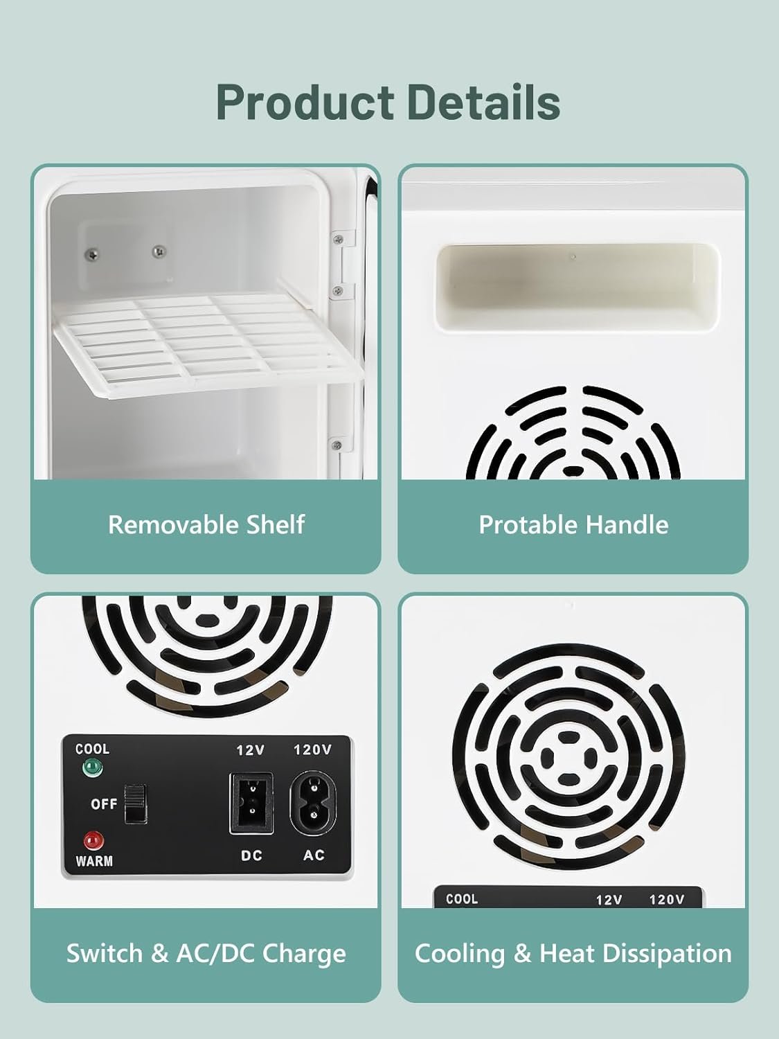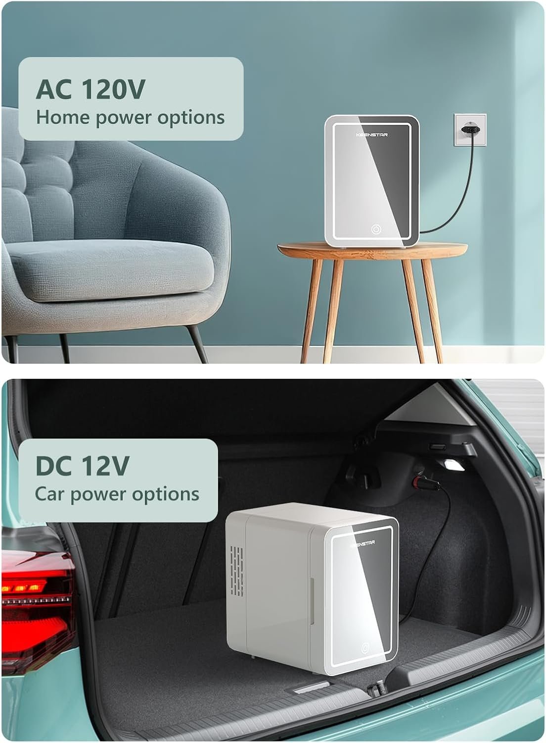 Home and Car Use: Designed for home and car use, this cosmetic fridge comes with a household power cord (AC-110V) and a car power cord (DC-12V). With a 4-liter capacity, it’s ideal for cooling six 12 oz cans, and the removable shelves allow for flexible storage solutions.