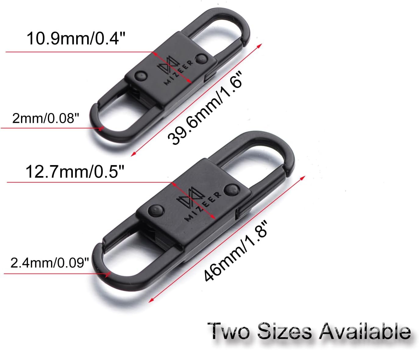 Two Sizes and Four Colors Available:The two sizes are39.6mm*10.9mm and 46mm*12.66mm,Suitable for different bags and different zippers