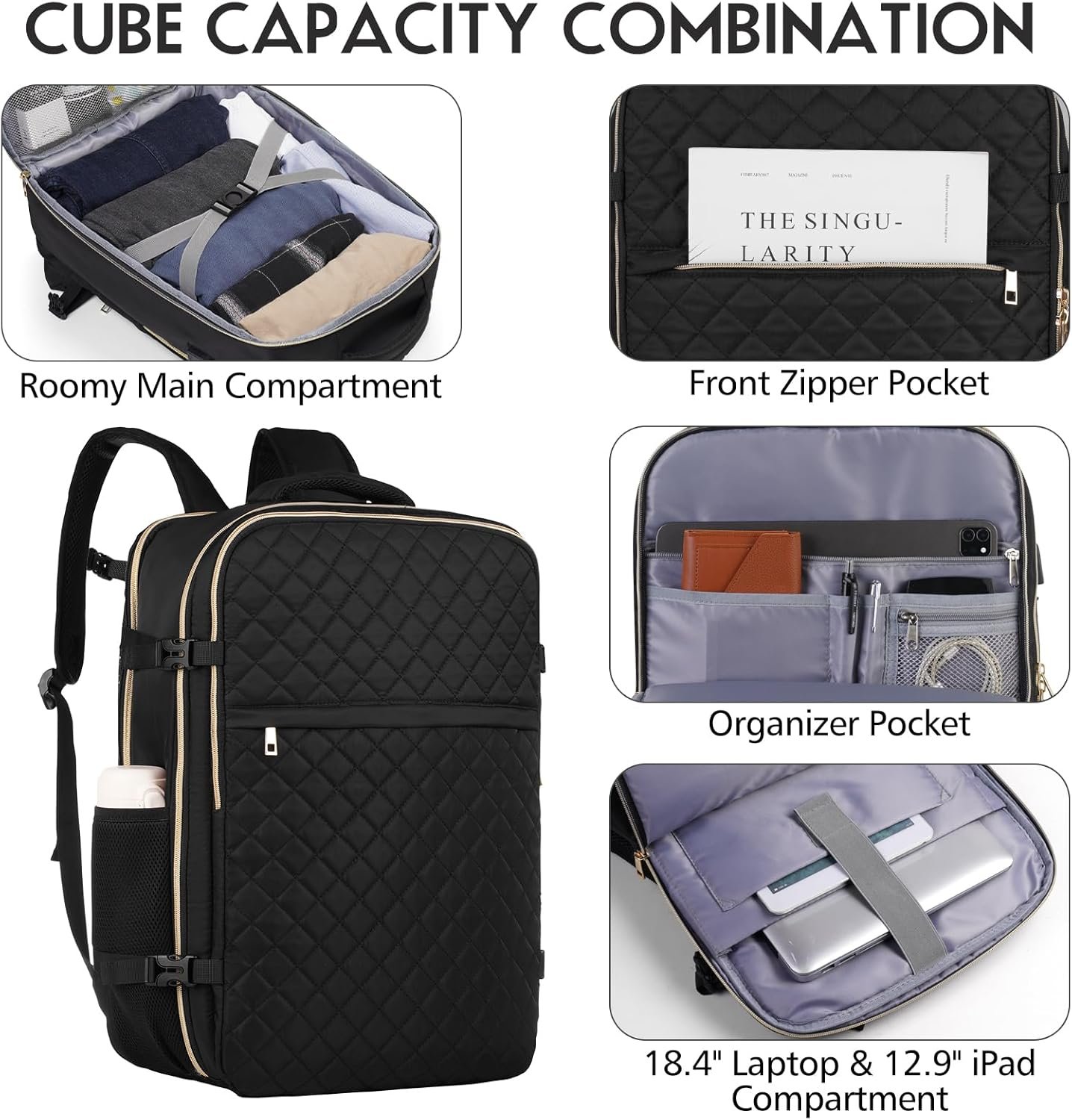 【Travel Backpack Carry On Flight Approved】:The dimension of black backpack is 20 x 13 x 7.9 inch,large capacity with 35 L. It fits perfectly under the seat or in the overhead bin. The travel bag is approved by Spirit, Frontier, JetBlue, and other budget airlines, it’s the great choice for personal item for hassle-free air travel.