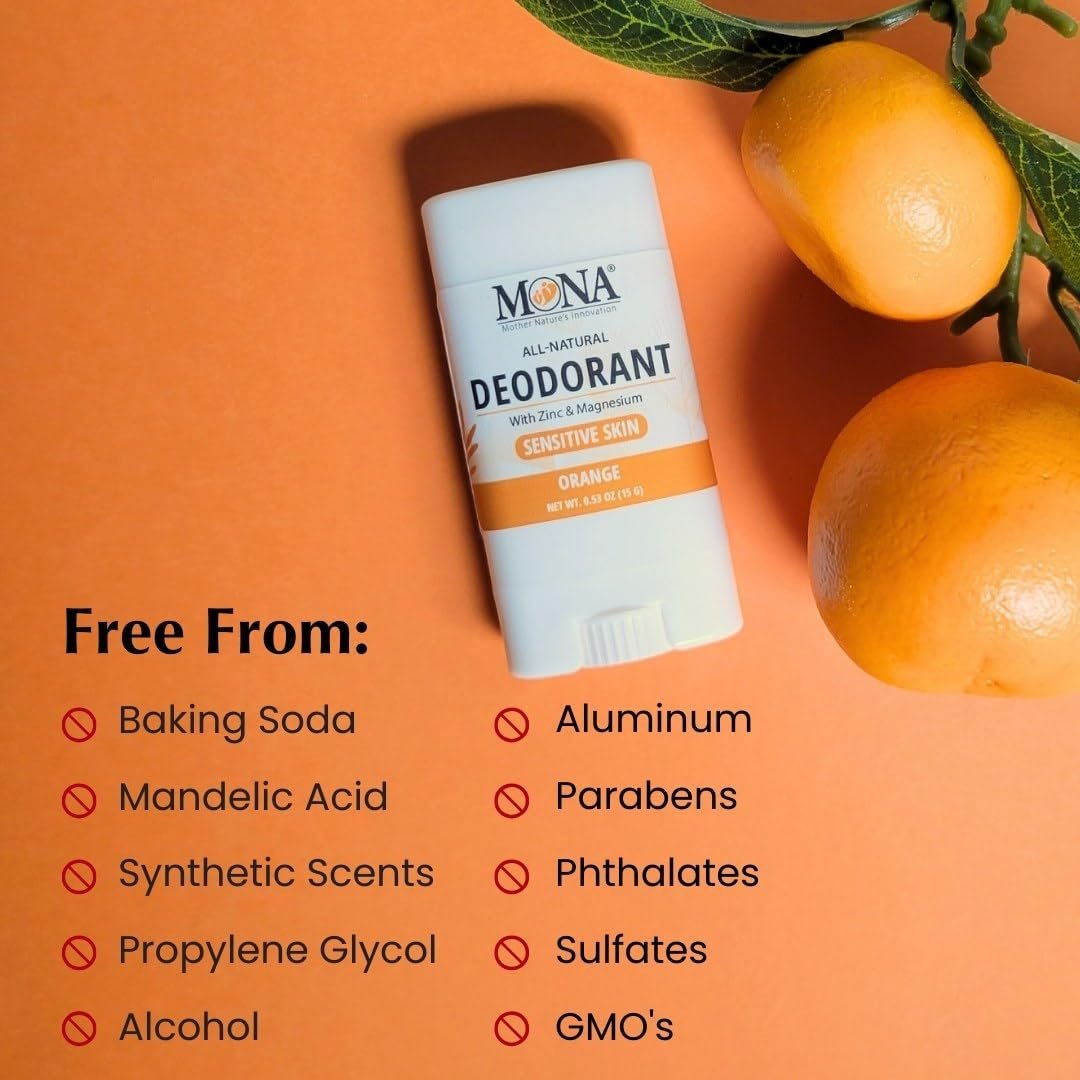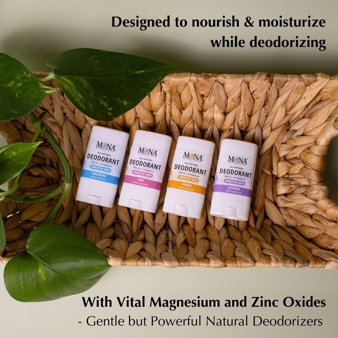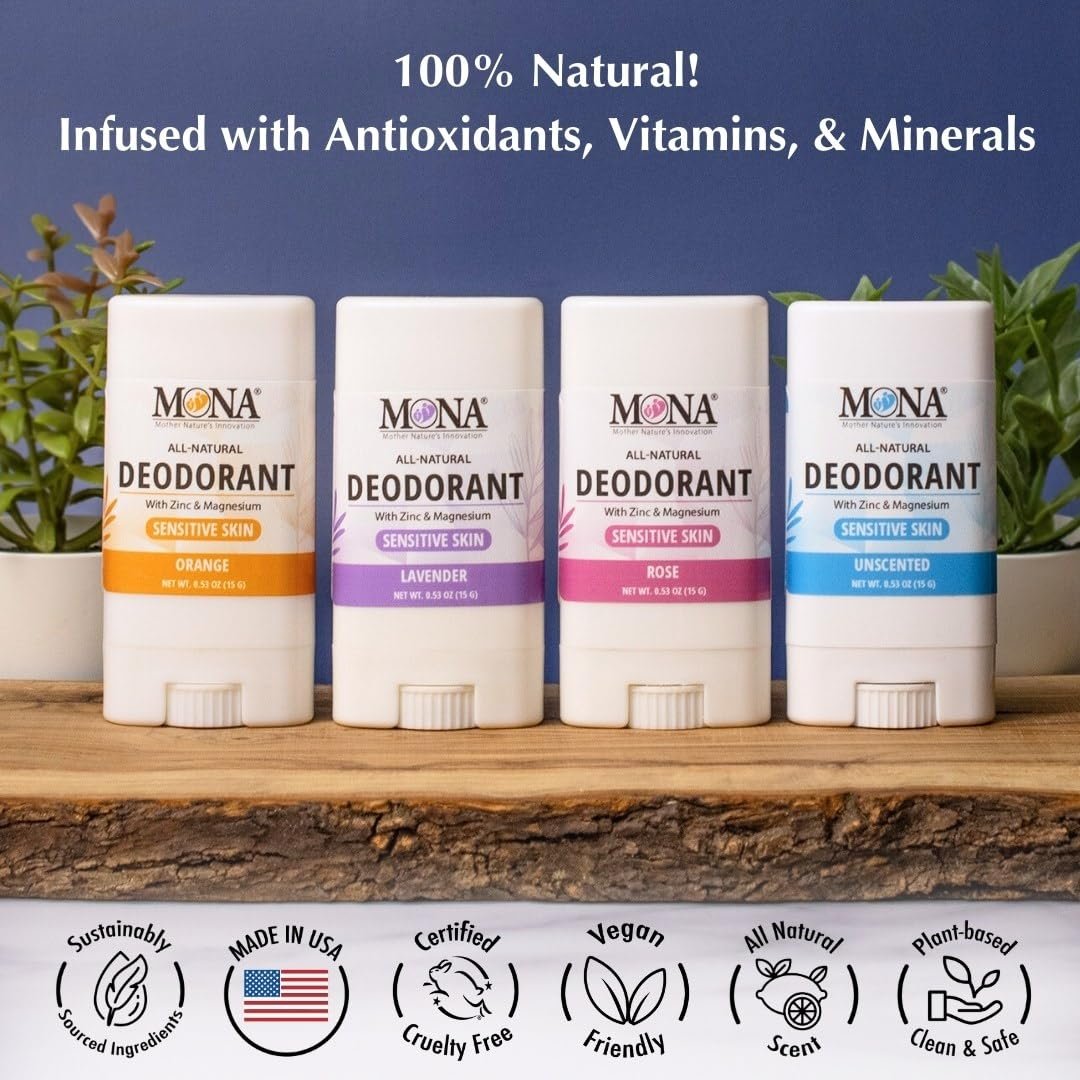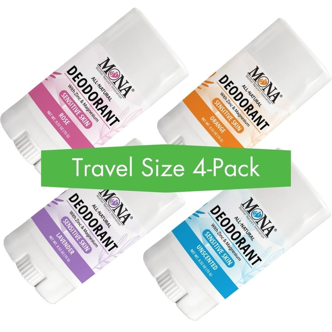 MONA All Natural MINI DEORORANT For Women & Men | Vegan & Safe for Sensitive Skin | Aluminum & Baking Soda free Deodorant with All Natural Fragrance | (Travel 4-Pack VAR-1 (0.53 Oz each))