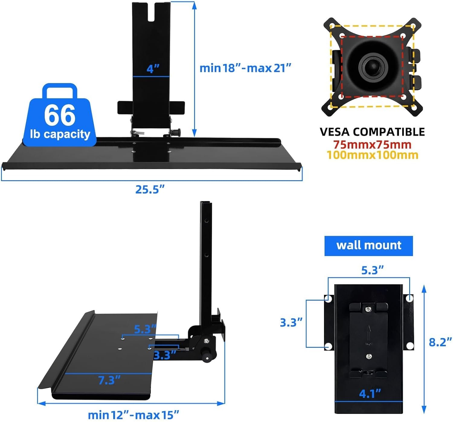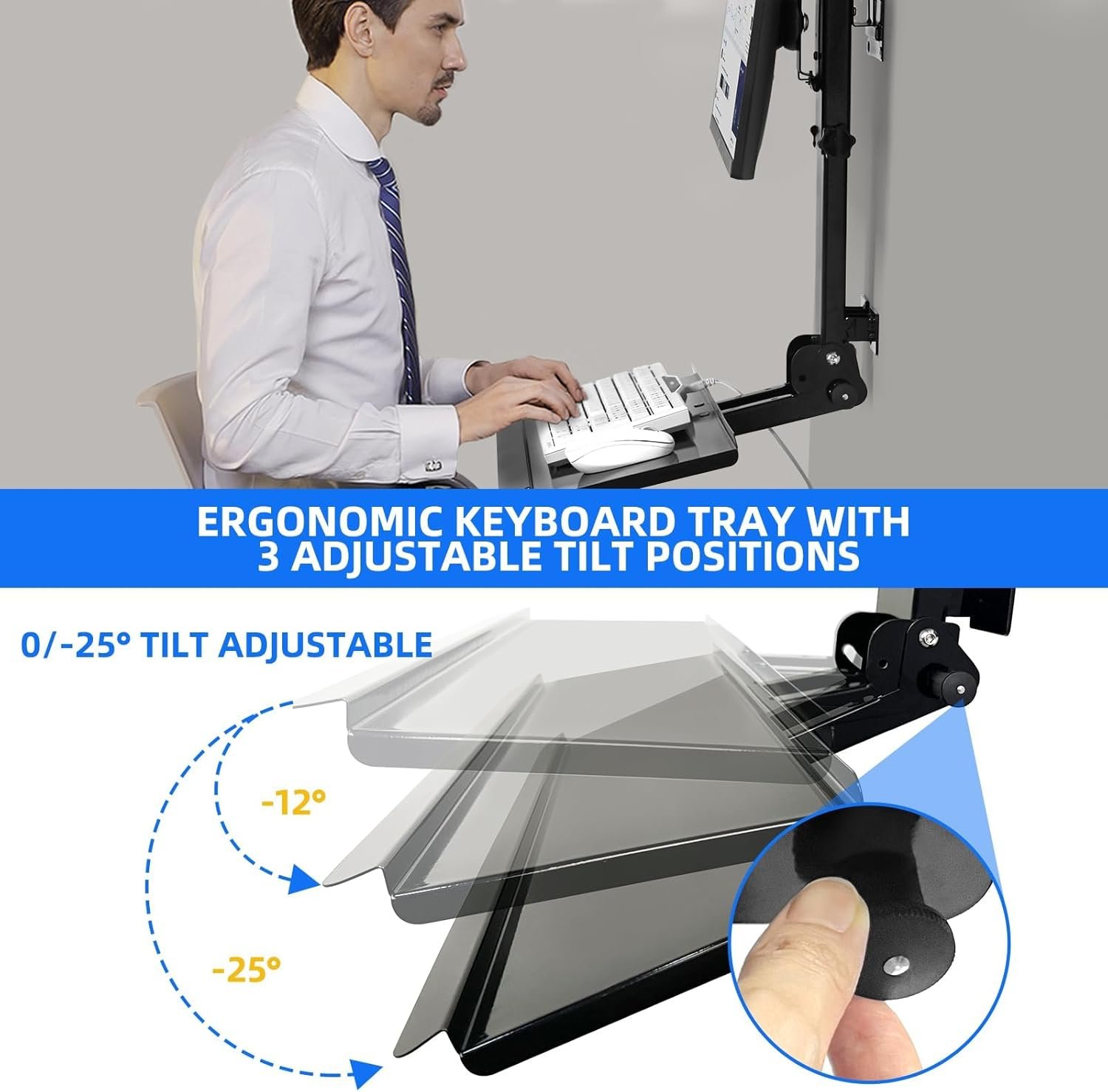 All-in-One Wall-Mounted Workstation Solution – Our space-saving setup combines a full-motion monitor stand, foldable keyboard tray, and secure PC mount for ultimate convenience. Easily adjust the height for ergonomic comfort (standing or sitting), fold away the keyboard when not in use, and keep your PC safely elevated—maximizing floor space while improving airflow and posture.