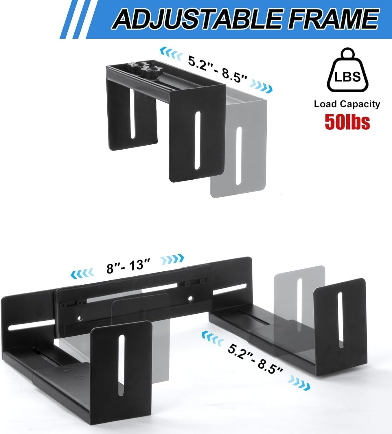 Ultra-Strong & Universal – The PC wall mount is built with heavy-duty steel to securely hold up to 50lbs, featuring an open-frame design that fits most PC cases (5.2″-8.5″ wide) without height restrictions—stronger and more stable than strap-style mounts.
