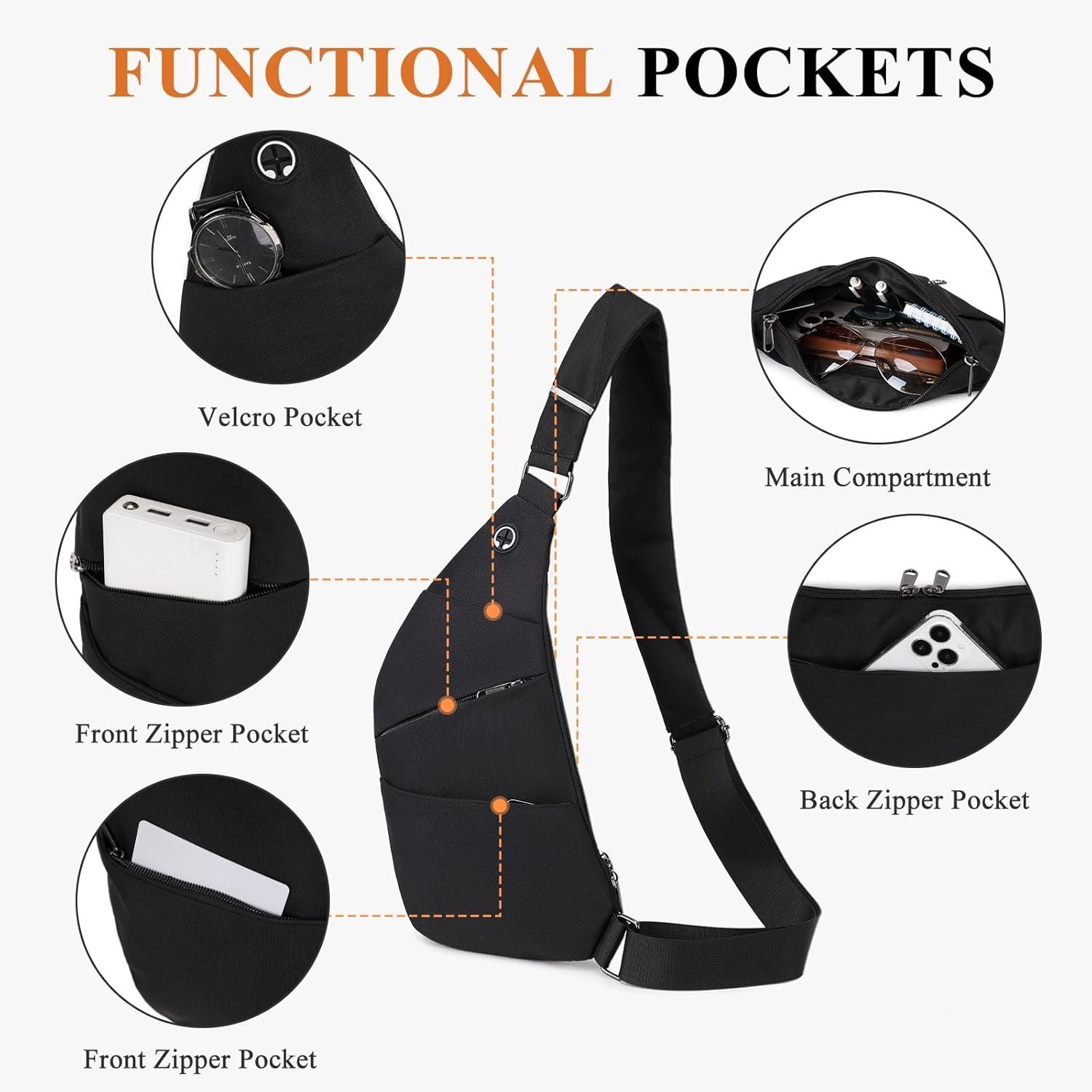 Multipurpose Chest Bag: Adjustable strap(the length range 33inch-48inch), Mini backpack purse uses branded quality zippers and comfortable polyester fabric, precise stitching make it durable; And it is closed to your body, can be used as anti theft bag