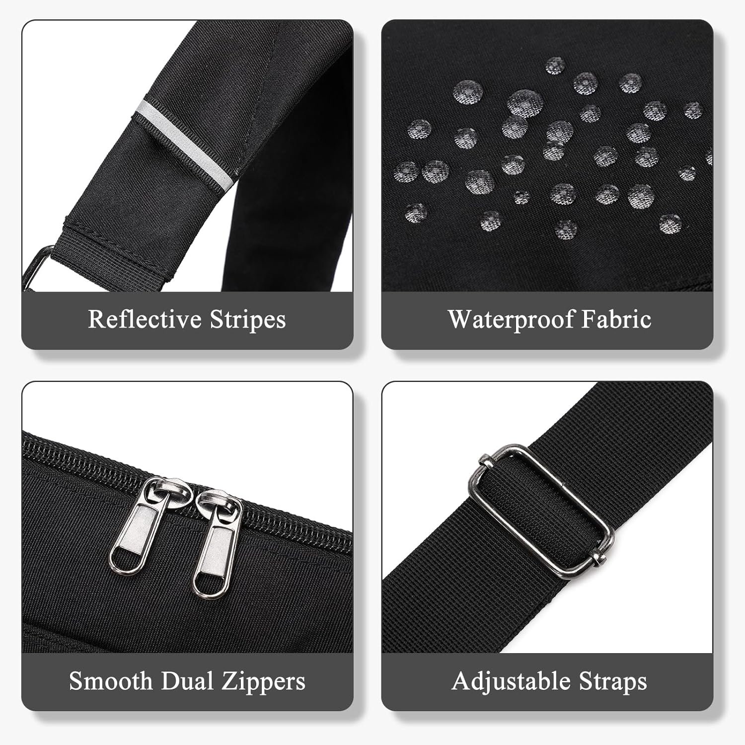 Thoughtful design: Design with one small hole for earphone, Night reflective belt on the shoulder chest bag strap also can be used to fix the earphone or sun-glass, avoid tangle cables
