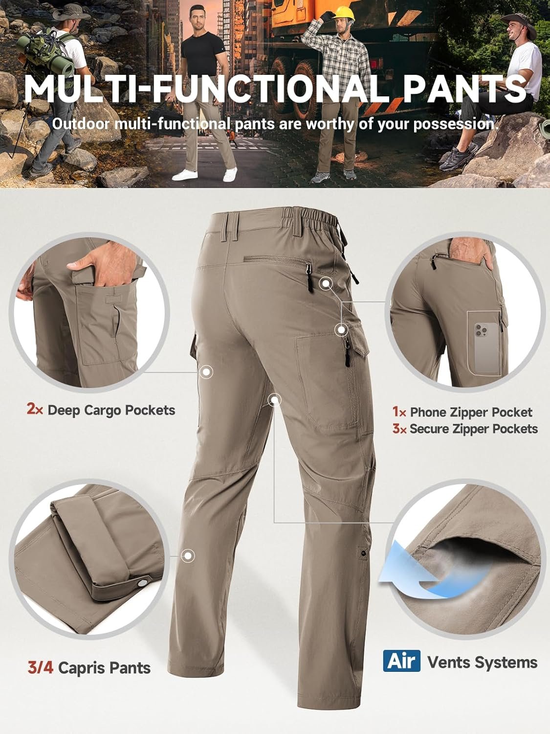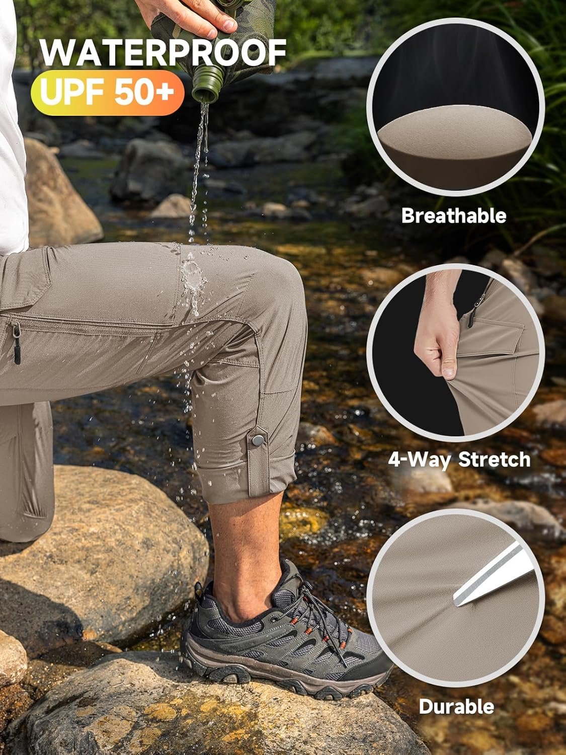 Moosehill Men’s Hiking Cargo Pants Lightweight Water-Resistant Quick Dry for Tactical Work Fishing Golf Travel Outdoor Casual