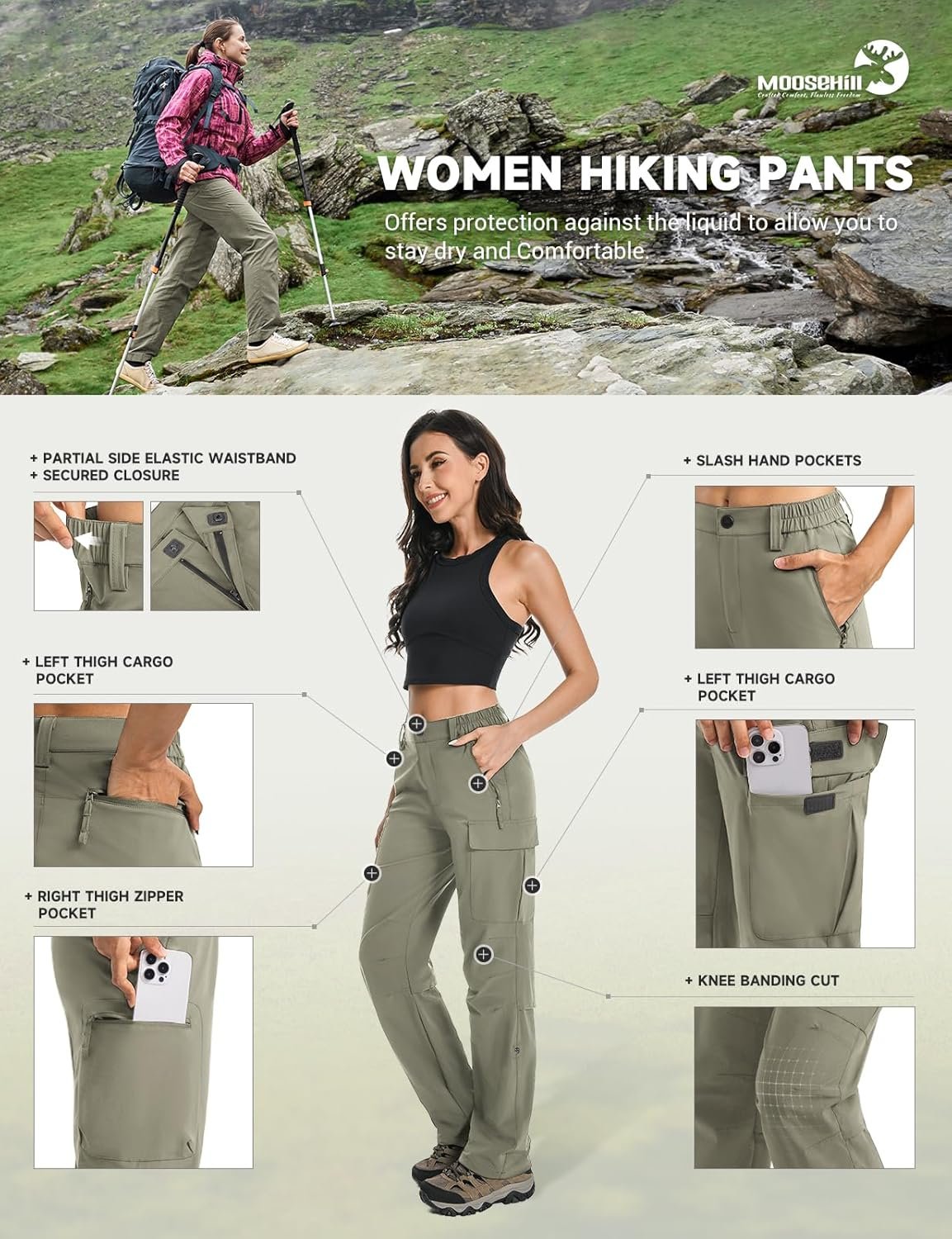 Moosehill Women’s Hiking Pants Lightweight Quick Dry Water Resistant Cargo Travel Work Summer Pants for All Seasons