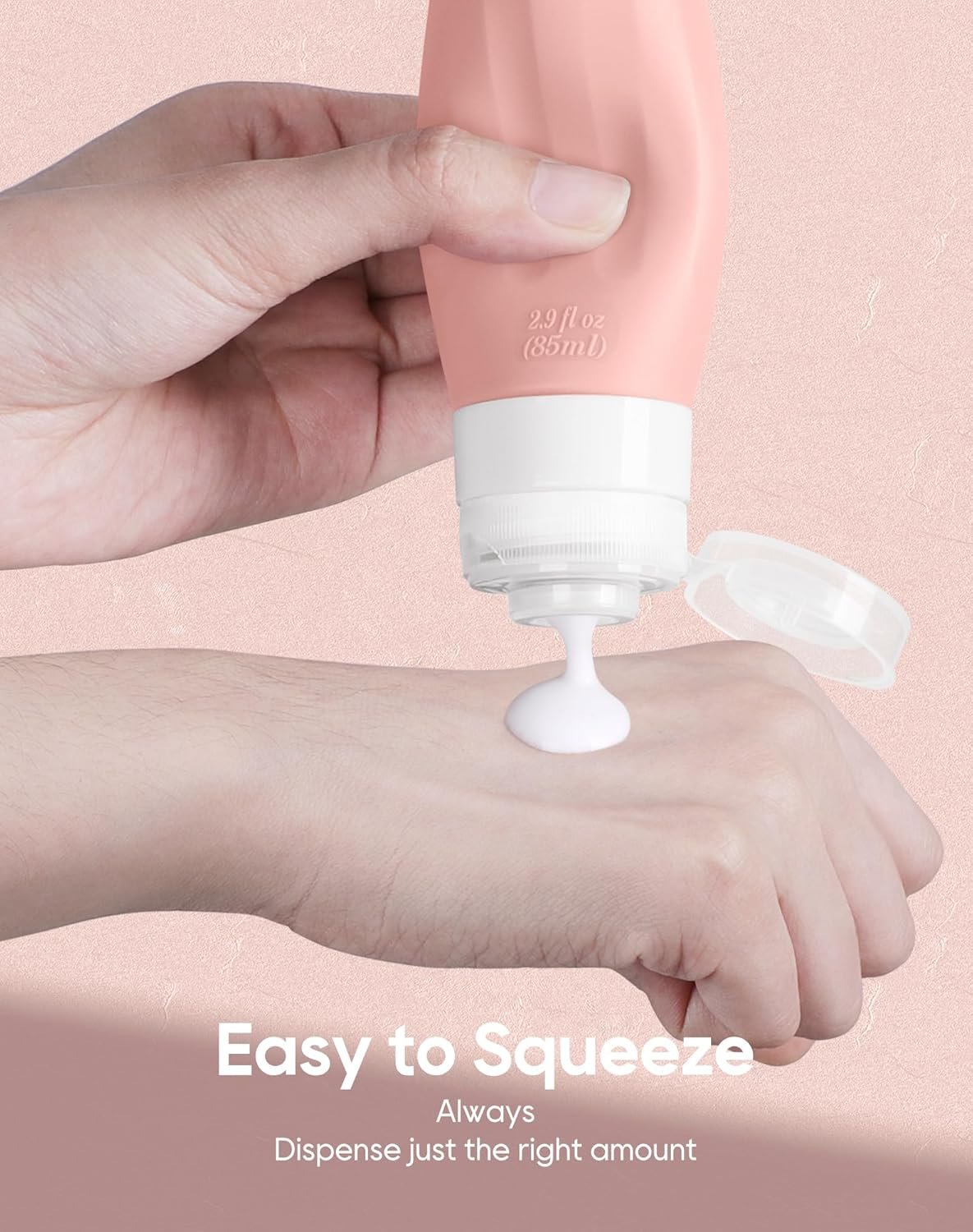 BPA free silicone material, squeezable and collapsible design makes travel bottles easy to use and clean