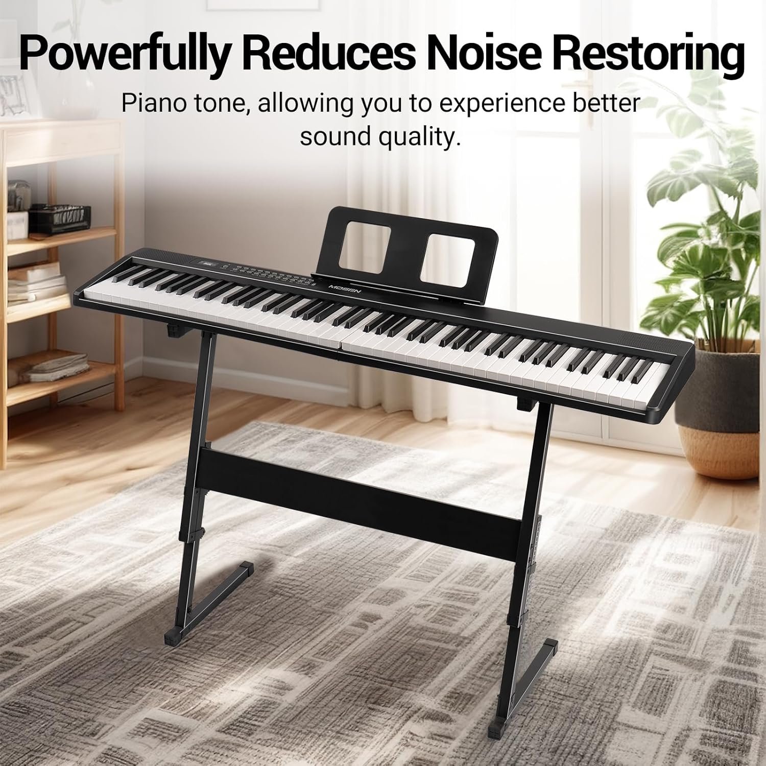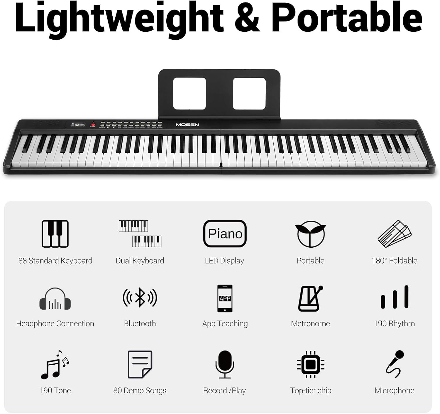 MOSEN 88 Keys Full Size Portable Piano Keyboard for Beginner, Semi-Weighted Foldable Piano with 190 Rhythms&Tones, Electric Piano Keyboard with microphone, music stand, sticker, Black