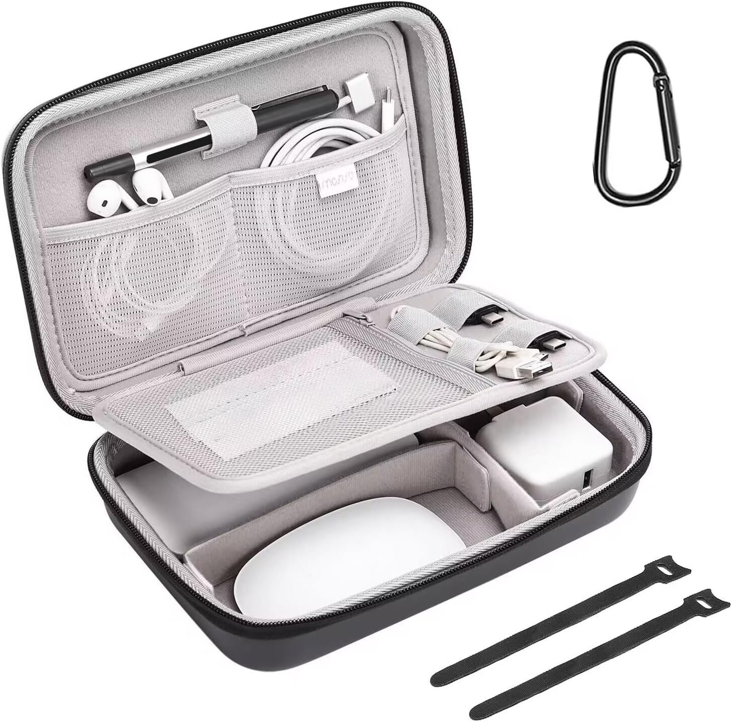 MOSISO Electronic Organizer Travel Case Compatible with MacBook Power Adapter, Compatible with Magic Mouse & Pencil, SD Card, USB Flash Disk with 4 Modular Insert & 2 Cable Tie & Snap Hook, Black