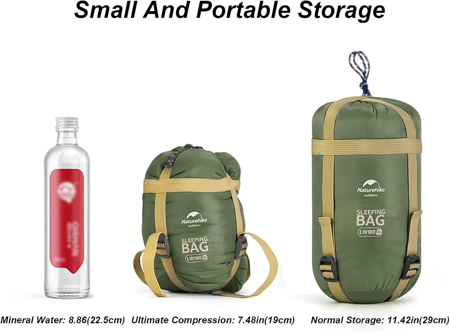 Ultra-Lightweight and Compact: With a weight of only 2 lbs and a compressed height of just 7.5″, the Naturehike Ultralight Compact Sleeping bag is among the lightest and most versatile sleeping bags available. It conveniently packs into the included carrying bag with compact straps, making it easy to transport on all your adventures.